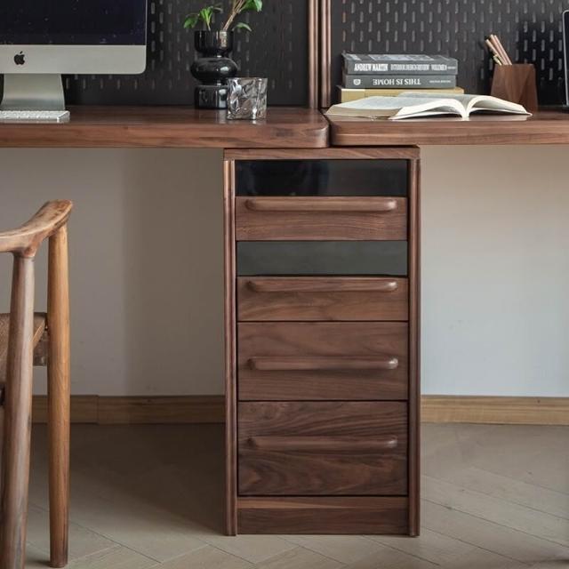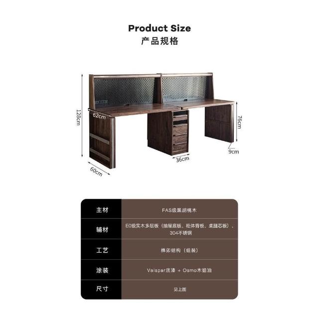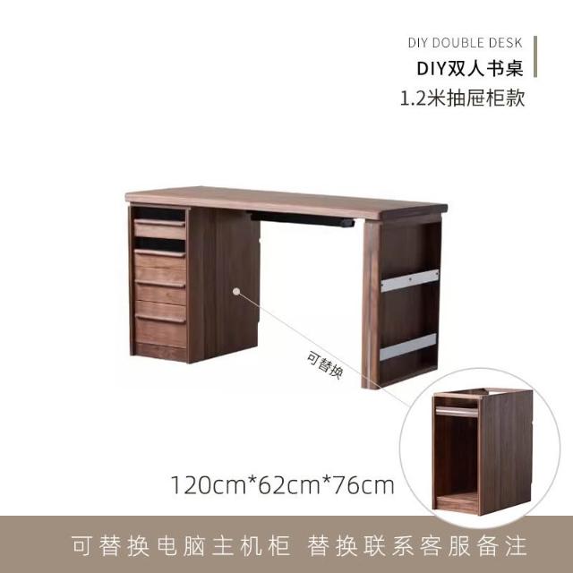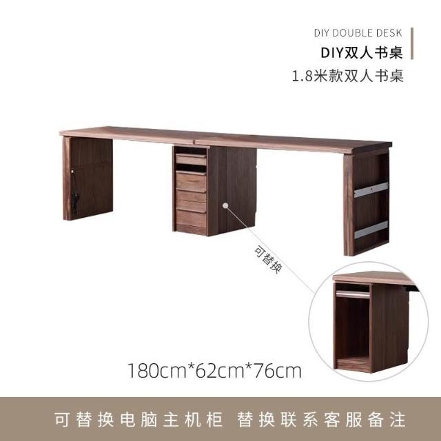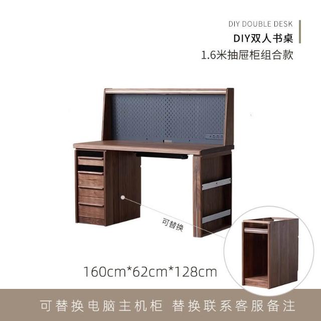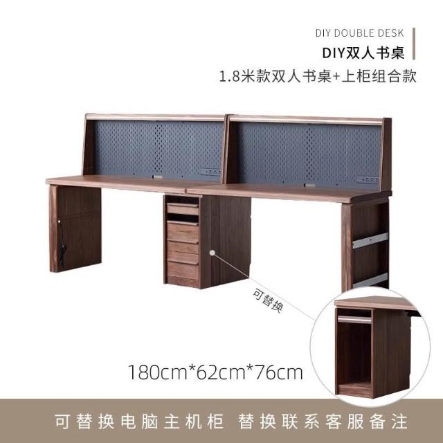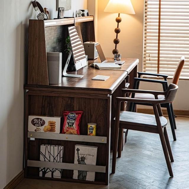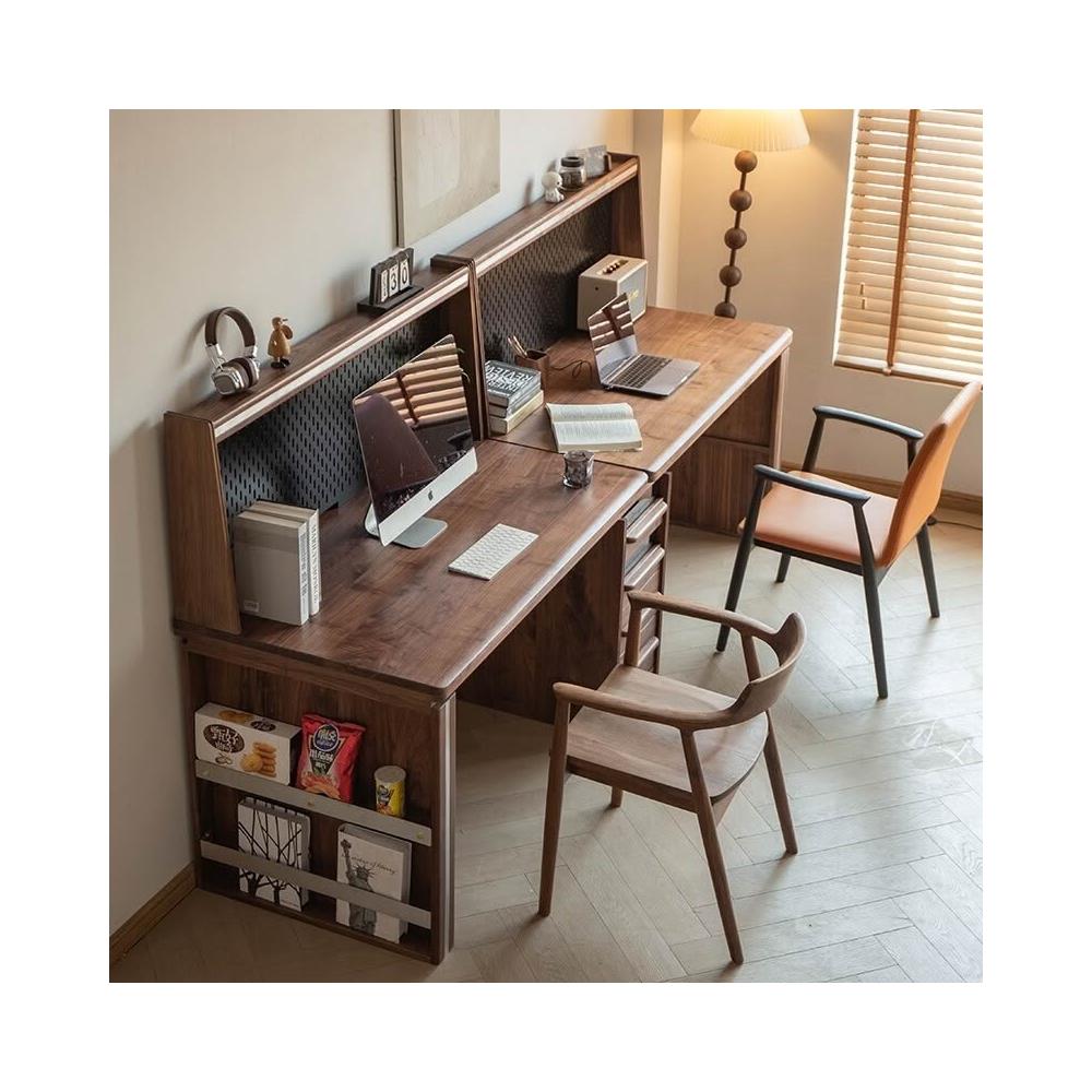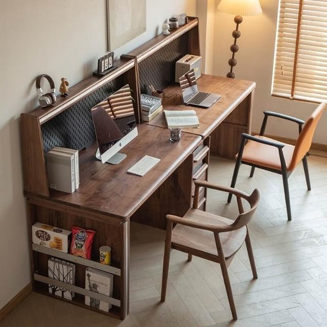 台灣熱銷 免運 黑胡桃原木雙人書桌 書櫃 一體實木電腦家用辦公學習桌 靠墻侘寂 日式 北歐 中古 復古 實木