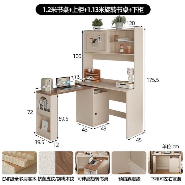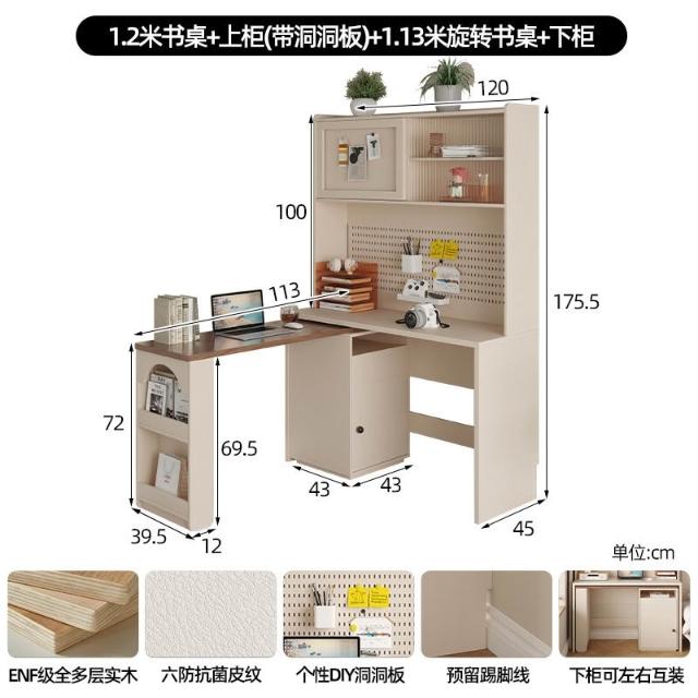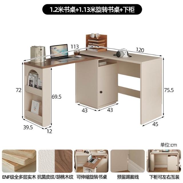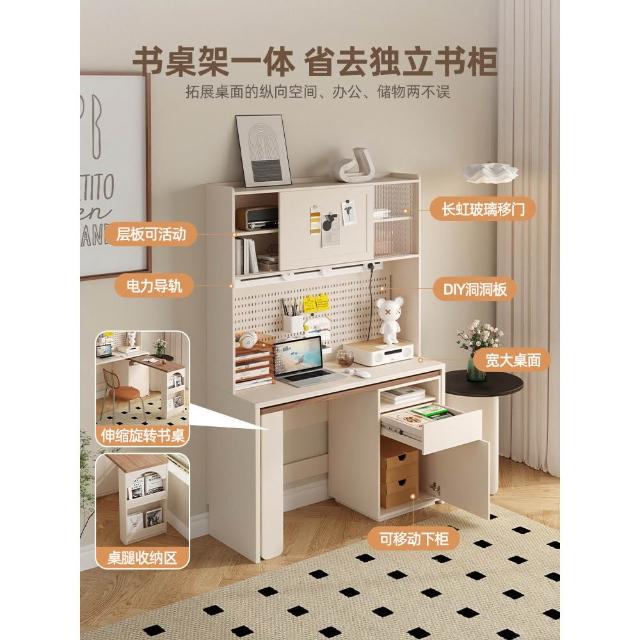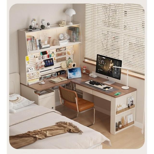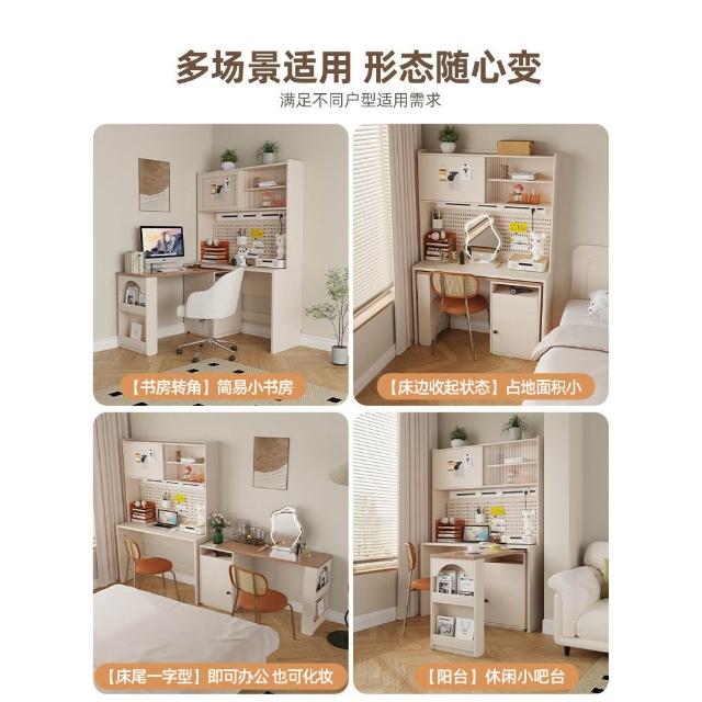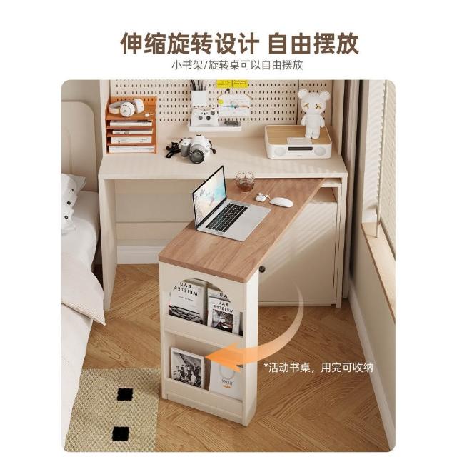 台灣熱銷 免運 實木旋轉折疊書桌 書架 一體拐角小戶型學生家用臥室轉角辦公電腦桌中古 復古 實木 日式 北歐 侘寂風