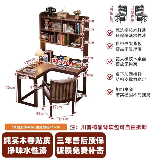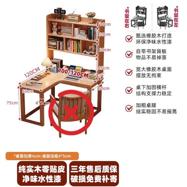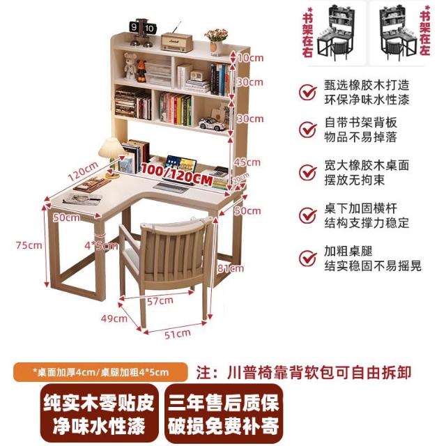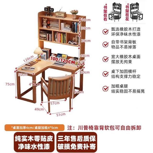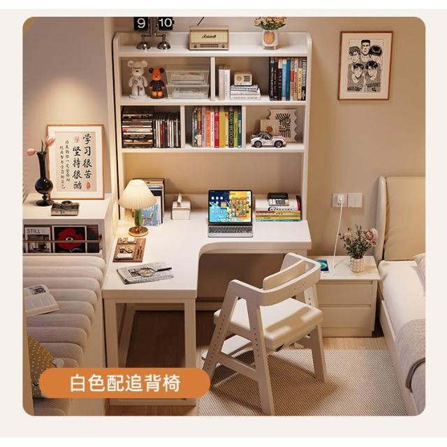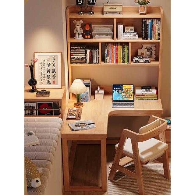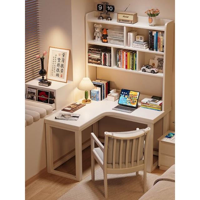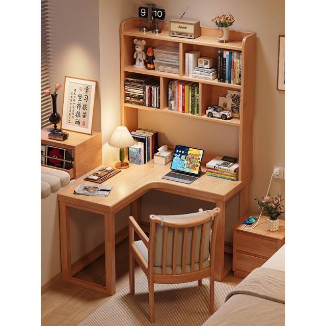 台灣熱銷 免運 純實木轉角書桌 書架 一體電腦桌 臥室家用小戶型飄窗拐角L型寫字台侘寂風 中古 實木 日式 復古