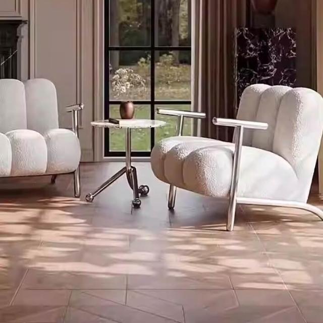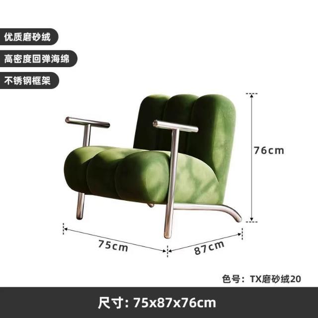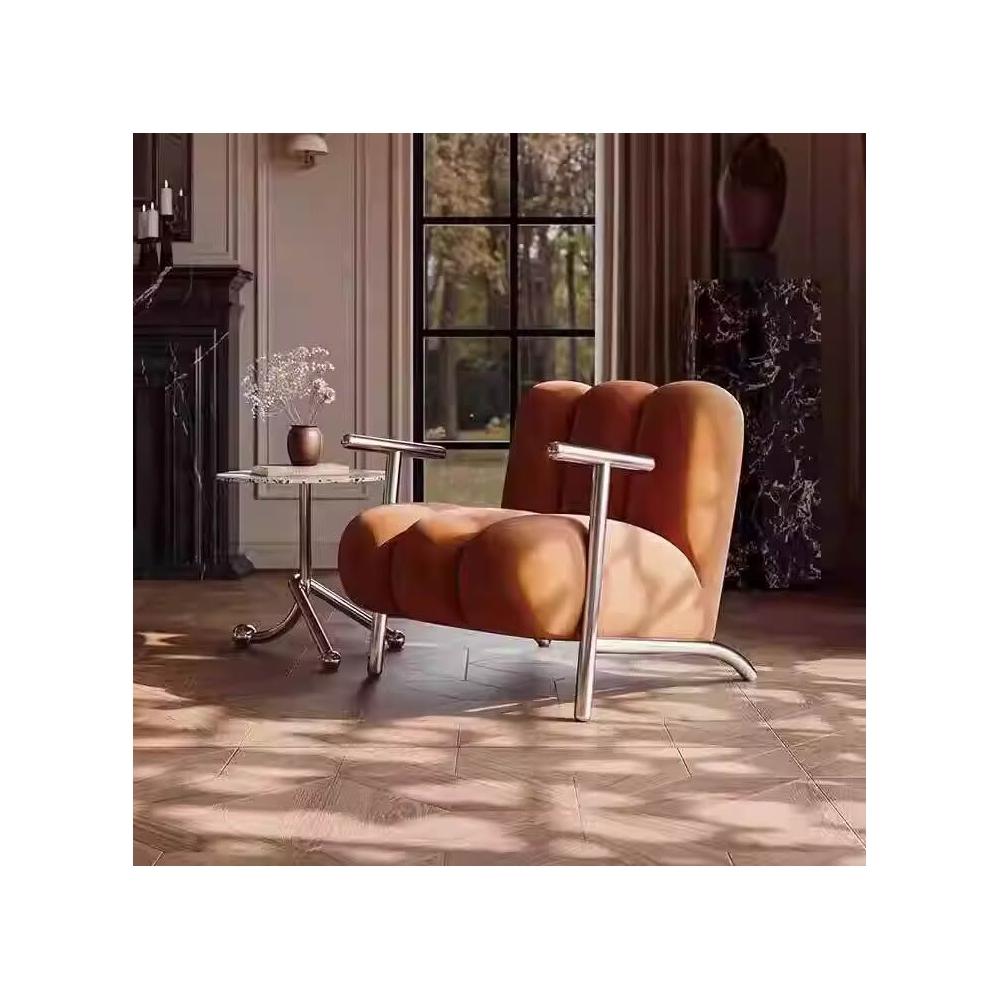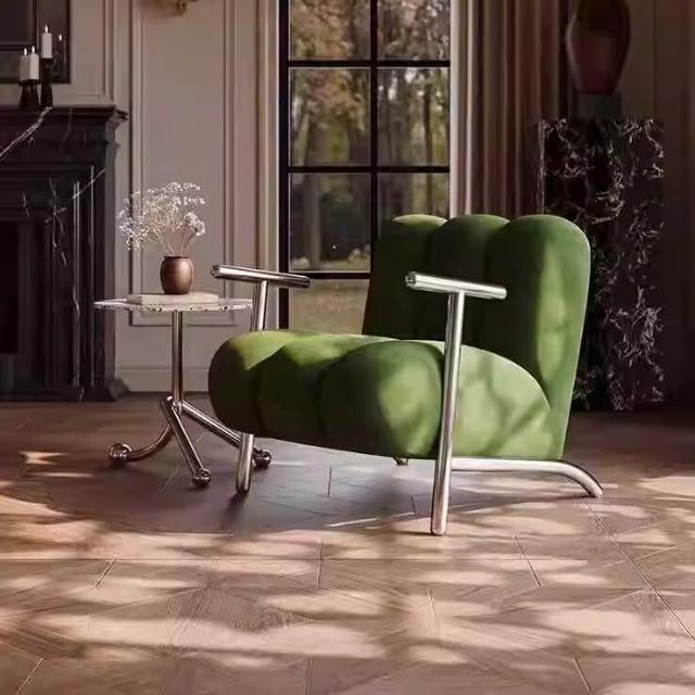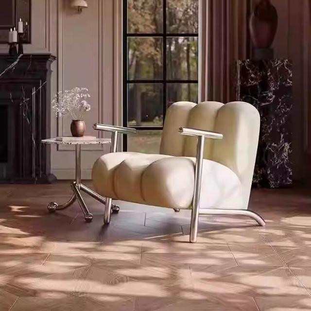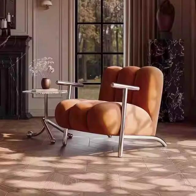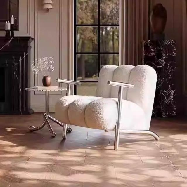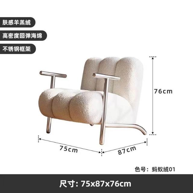 懶人沙發 單人沙發 休閒椅中古侘寂風簡約輕奢設計師客廳休閒單人沙發椅 創意懶人羊羔絨椅 子