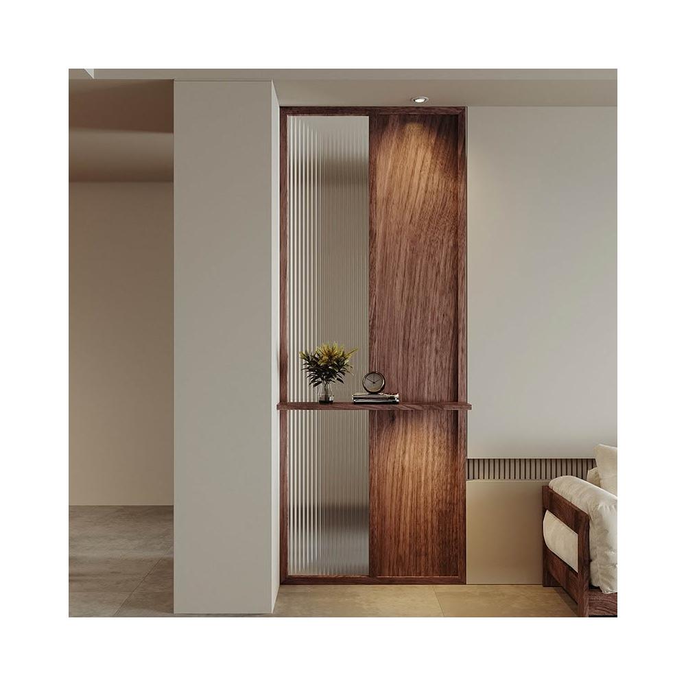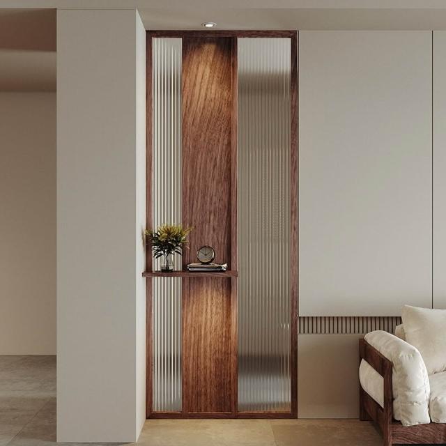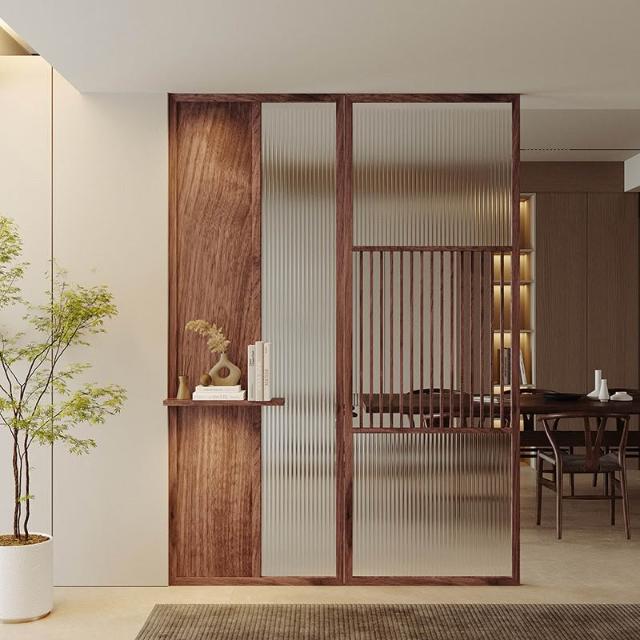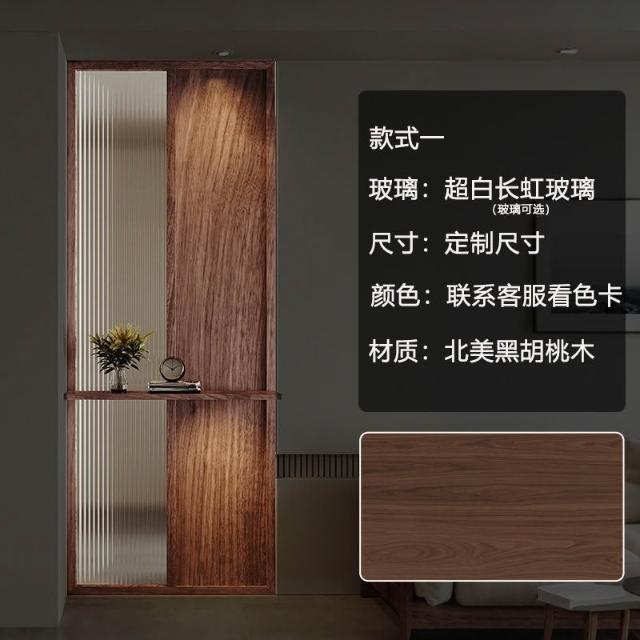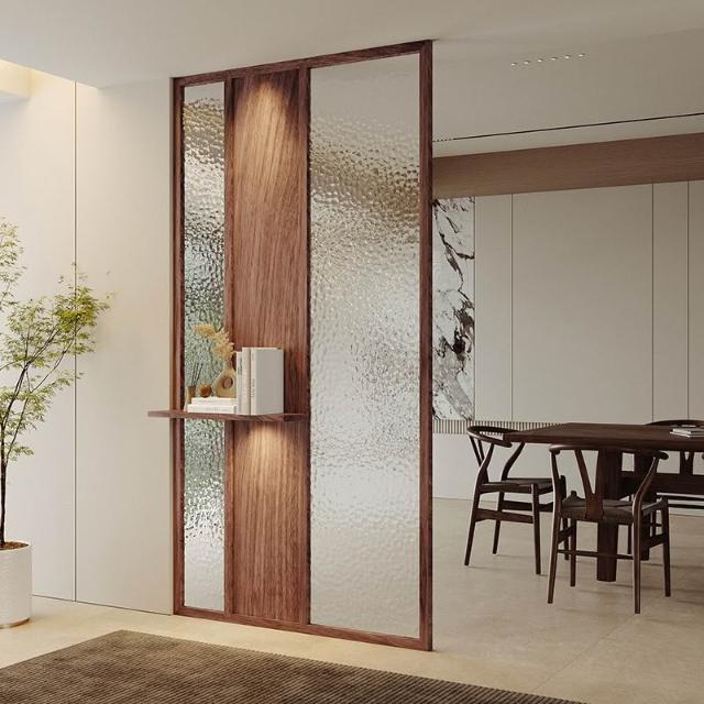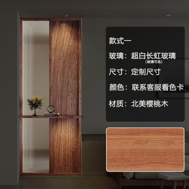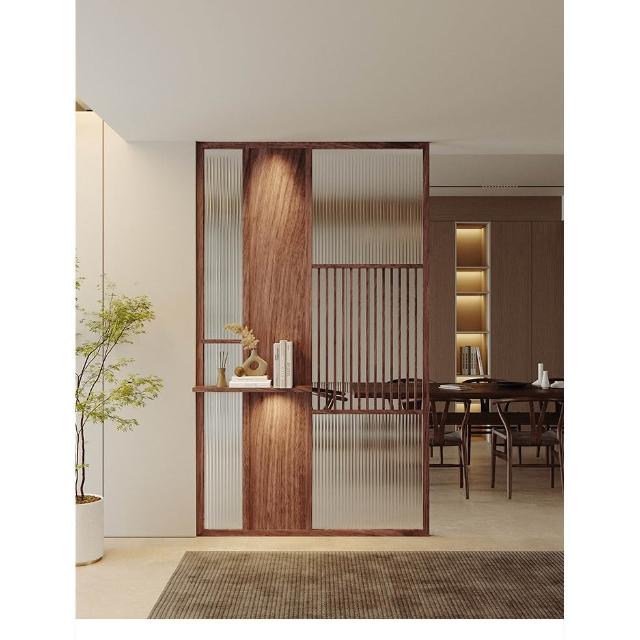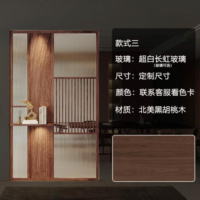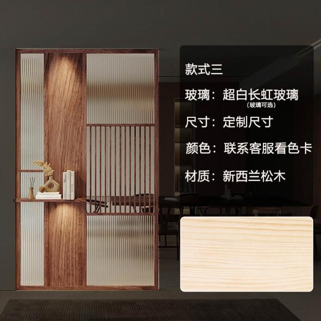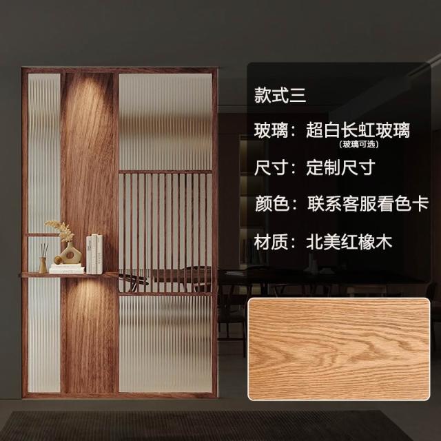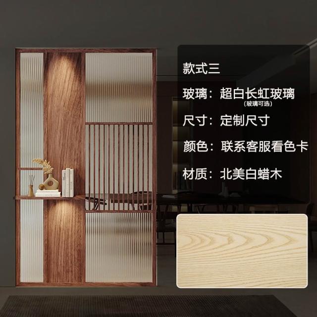新中式簡約家用入戶正對門玄關長虹玻璃隔斷 實木客廳餐廳屏風