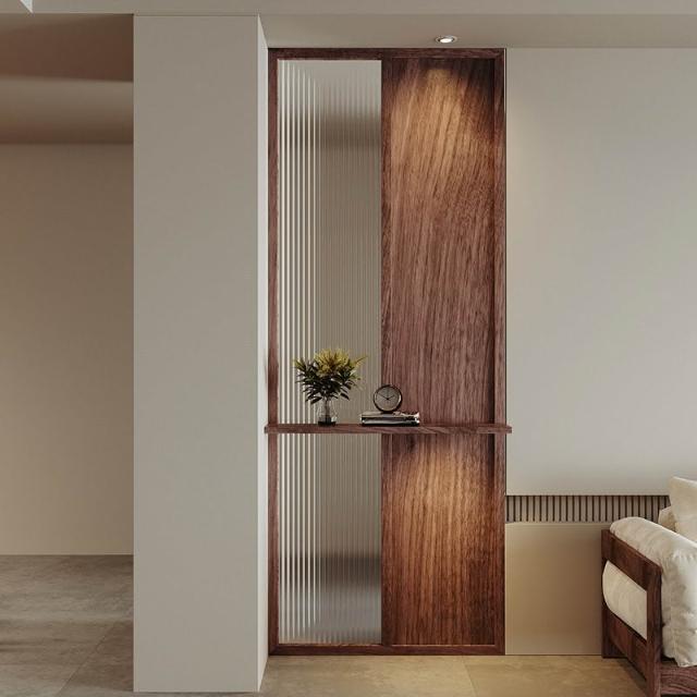 新中式簡約家用入戶正對門玄關長虹玻璃隔斷 實木客廳餐廳屏風