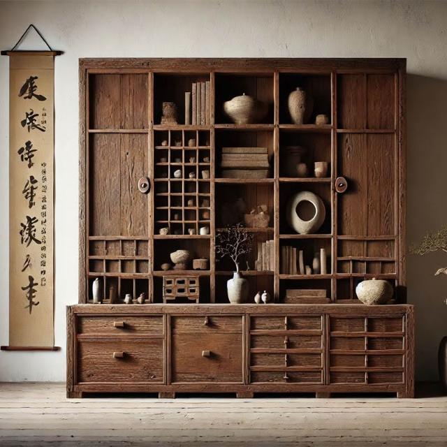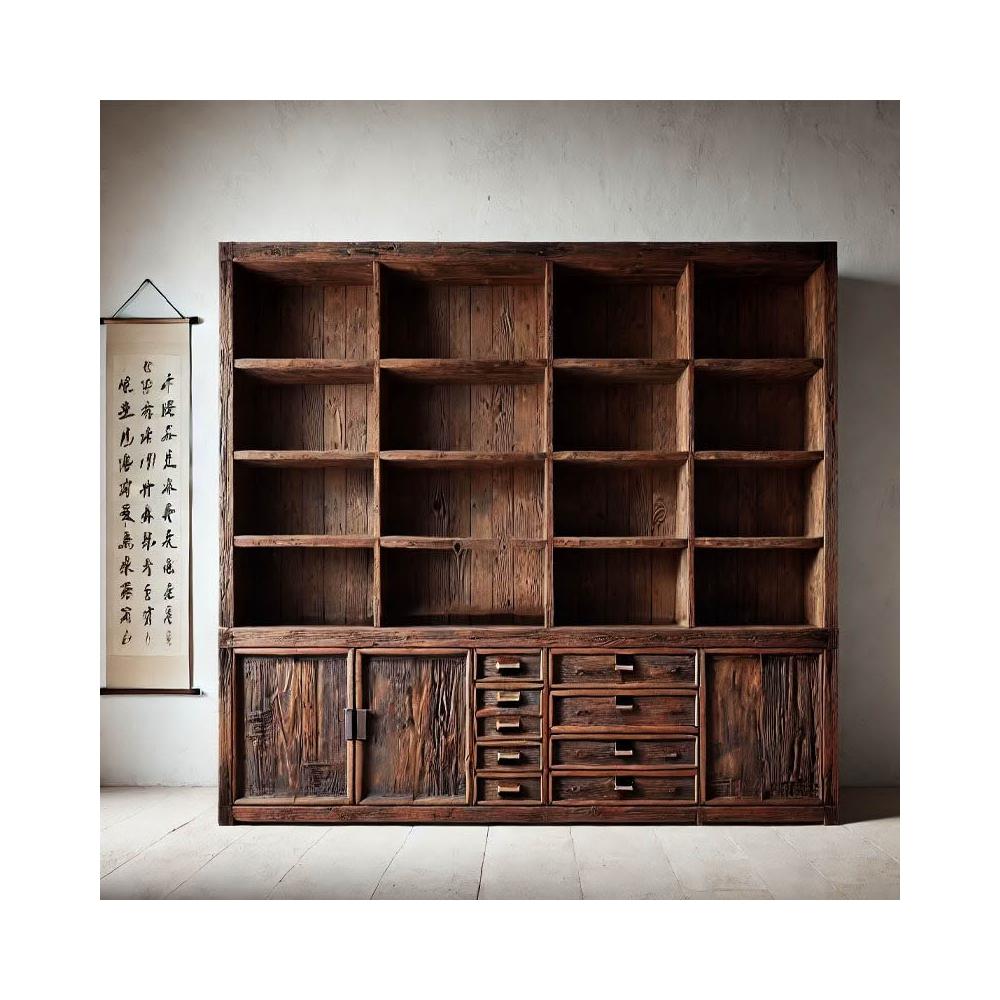台灣熱銷 免運 侘寂風老木風化木實木博古架 落地收納展示置物架 茶室客廳民宿多寶閣 榫卯工藝防潮防變形 小坪數百搭款