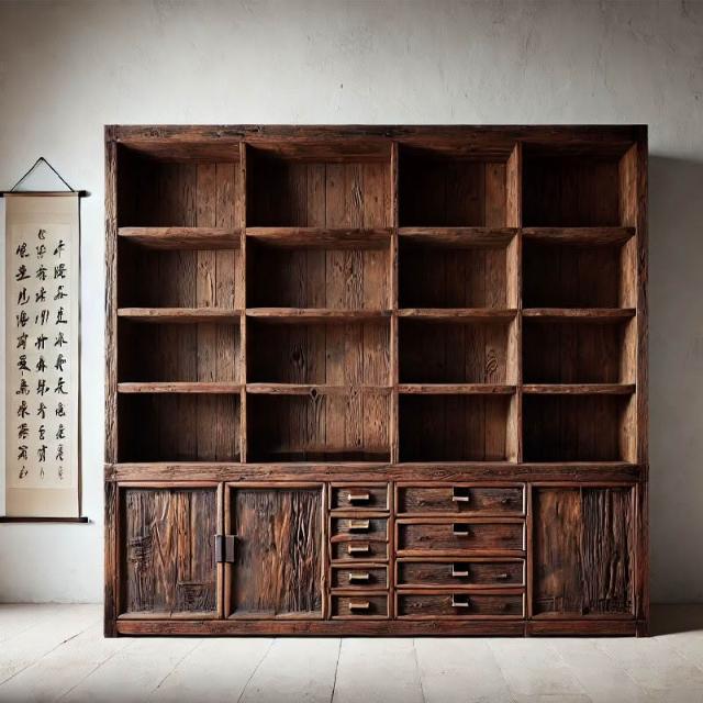 台灣熱銷 免運 侘寂風老木風化木實木博古架 落地收納展示置物架 茶室客廳民宿多寶閣 榫卯工藝防潮防變形 小坪數百搭款