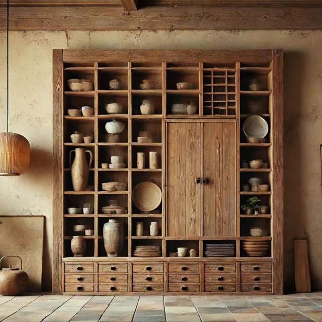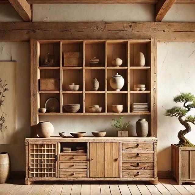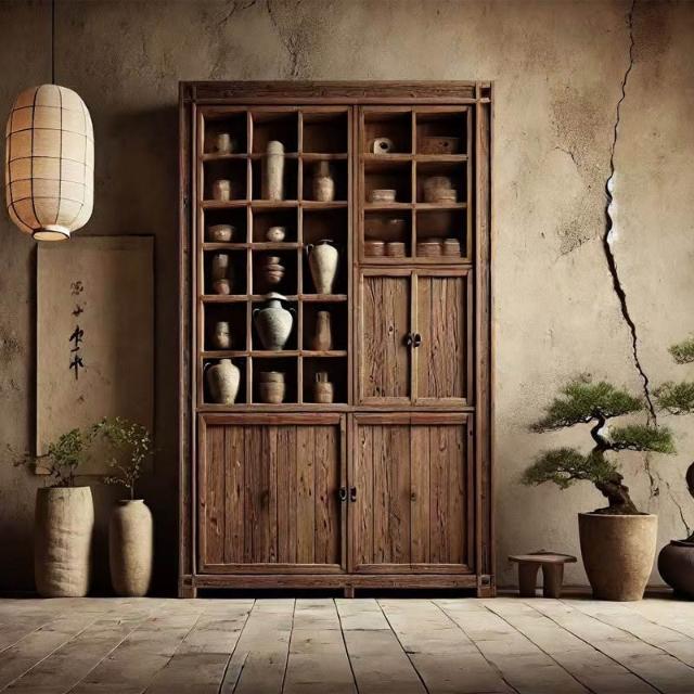 台灣熱銷 免運 侘寂風老木風化木實木博古架 落地收納展示置物架 茶室客廳民宿多寶閣 榫卯工藝防潮防變形 小坪數百搭款