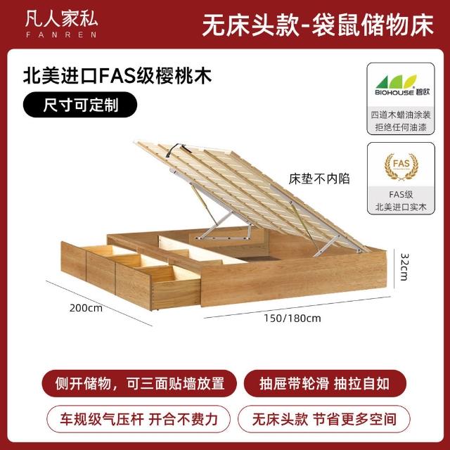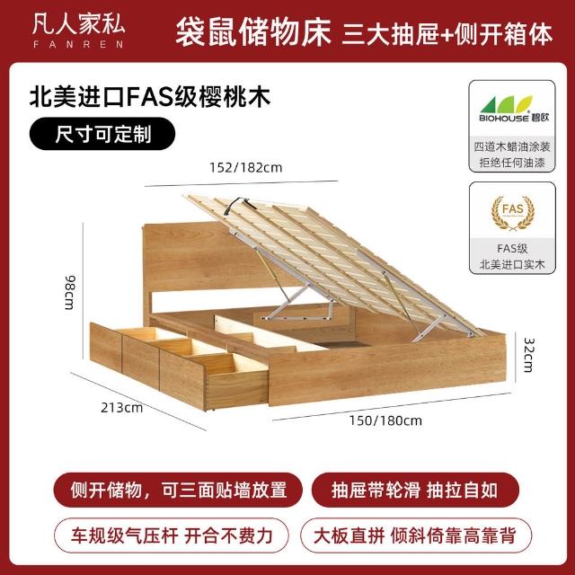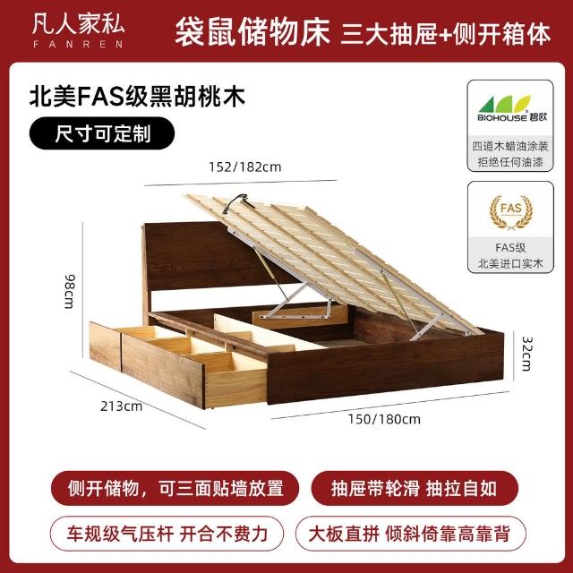 台湾热销 免运 北美黑胡桃木全實木高箱氣壓儲物床 復古三抽屜榻榻米箱體地台床 大容量收納穩固靜音 小戶型臥室防潮防蟲百搭
