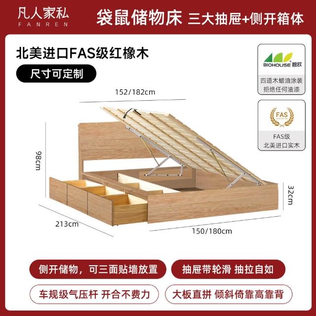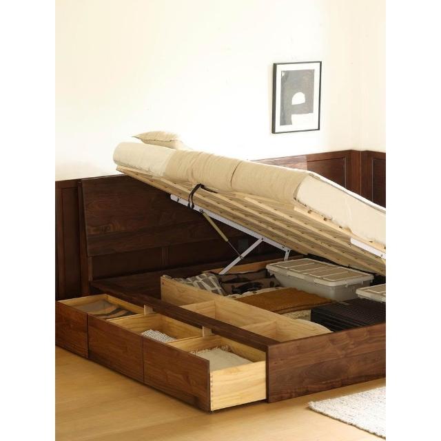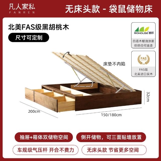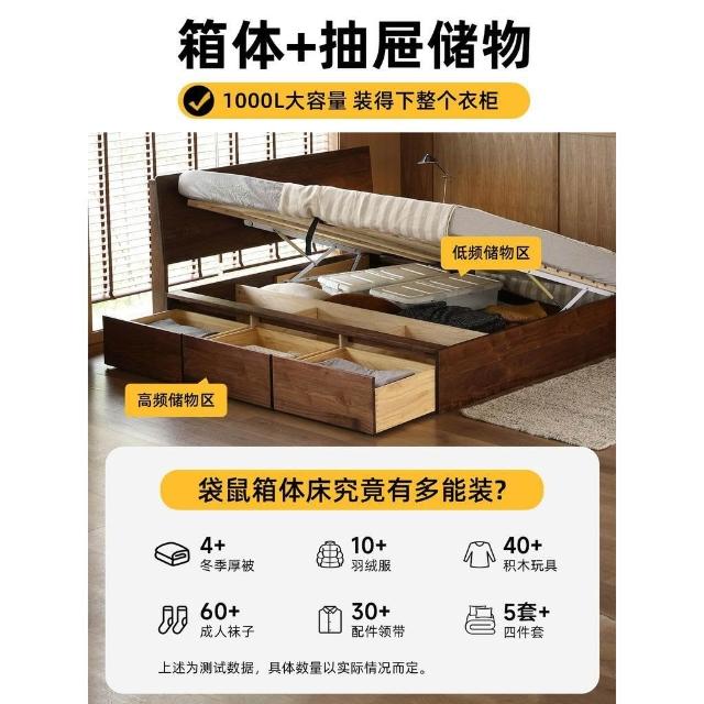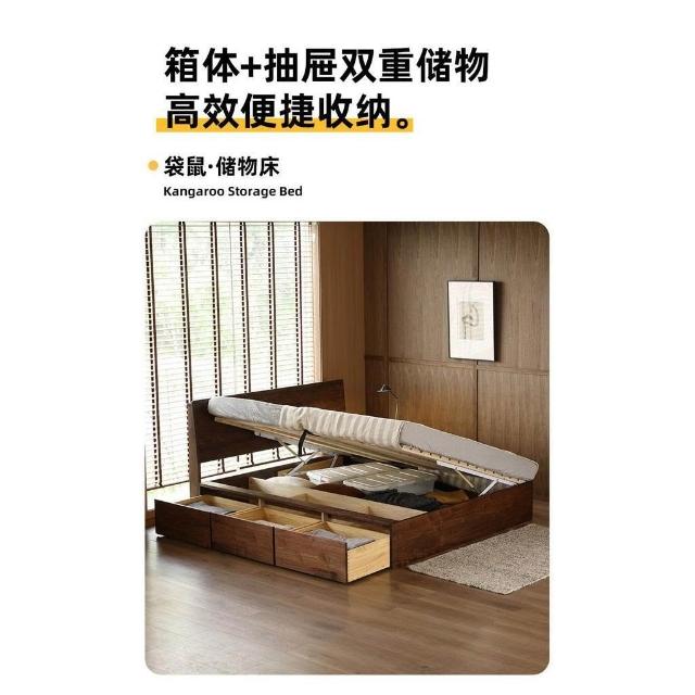 台湾热销 免运 北美黑胡桃木全實木高箱氣壓儲物床 復古三抽屜榻榻米箱體地台床 大容量收納穩固靜音 小戶型臥室防潮防蟲百搭