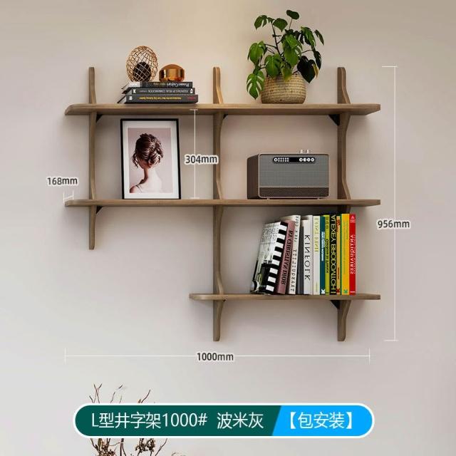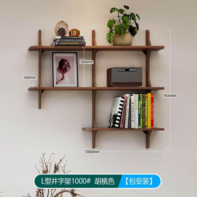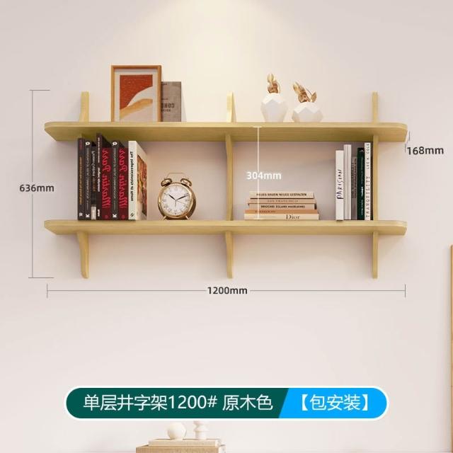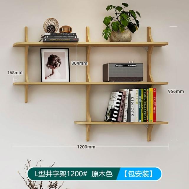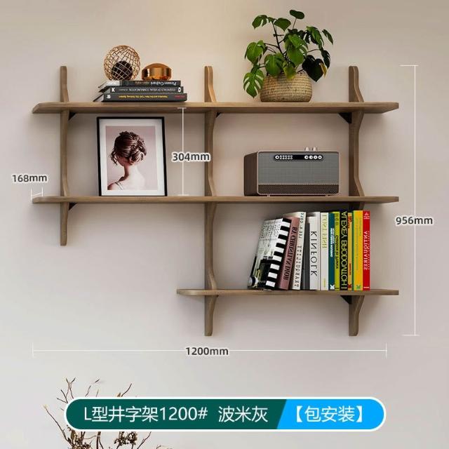 可開票 創意井字型置物架 客廳壁掛書架 實木多層收納架 掛牆面展示架 置物架