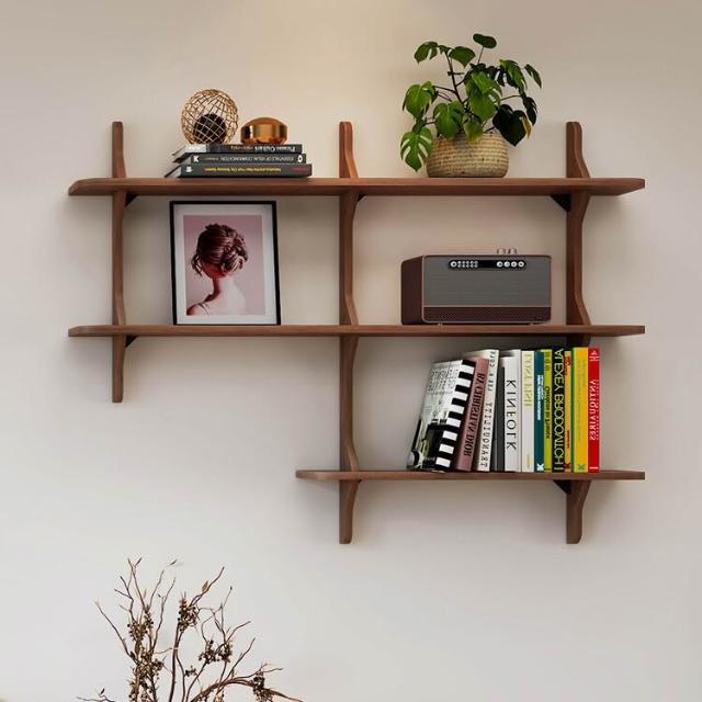 可開票 創意井字型置物架 客廳壁掛書架 實木多層收納架 掛牆面展示架 置物架