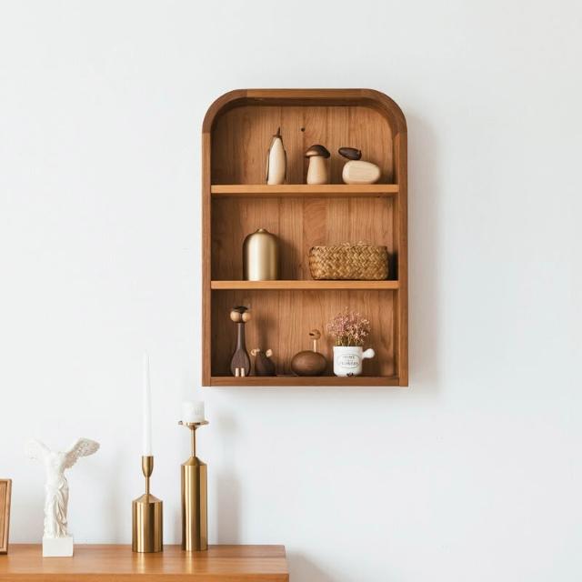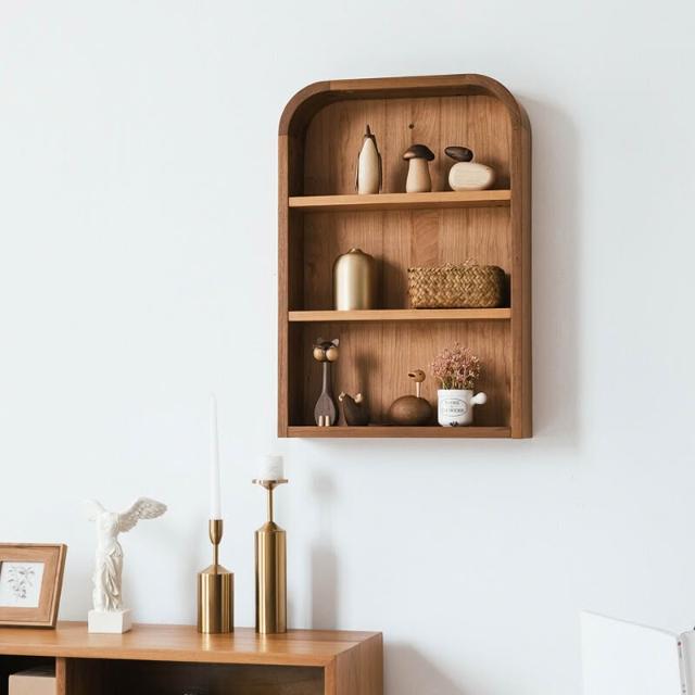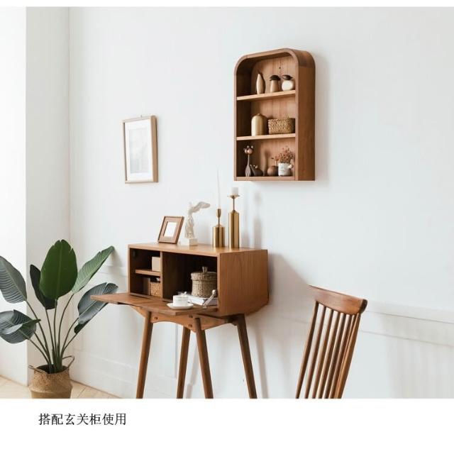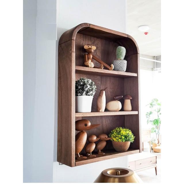 可開票 北歐全實木壁櫃 客廳掛架 置物架 緬甸老柚木吊柜 黑胡桃木玄關展示櫃