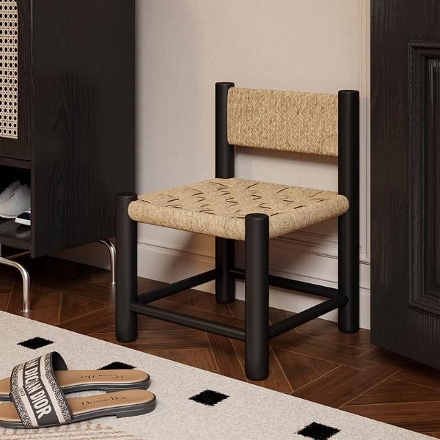 換鞋凳 穿鞋凳 小凳子 藤編凳子 實木復古矮凳家用入戶門口換鞋凳 客廳小板凳休閑靠背椅子