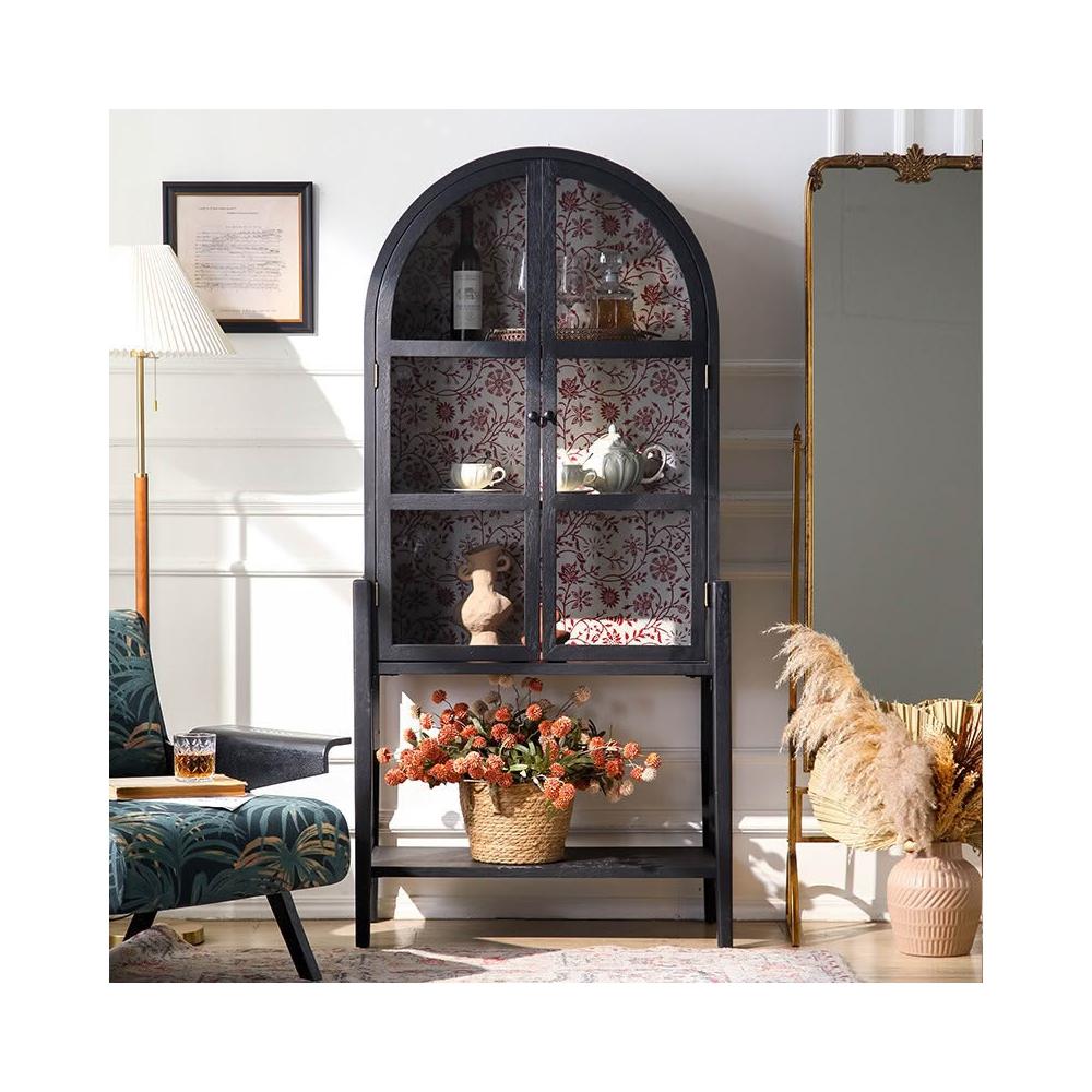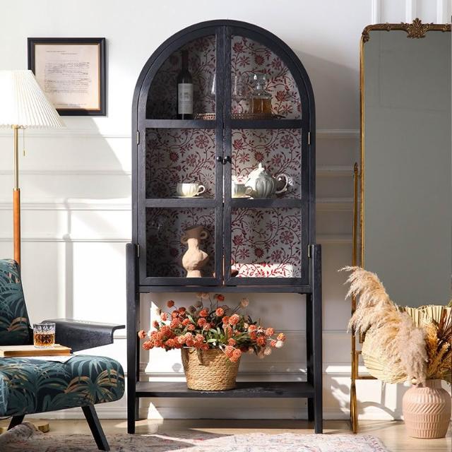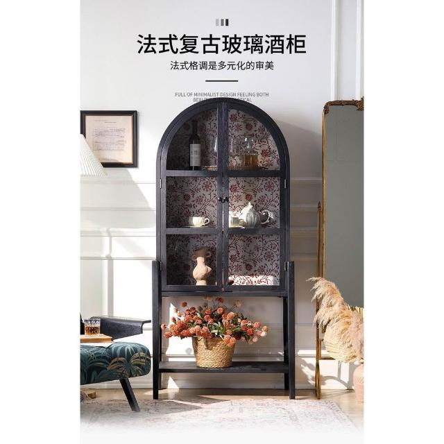 台湾热销 免运 法式復古實木彩繪花拱形餐邊柜 客廳入戶玄關靠牆玻璃門置物柜 輕奢雕花收納展示百搭款日式 侘寂风 复古 北