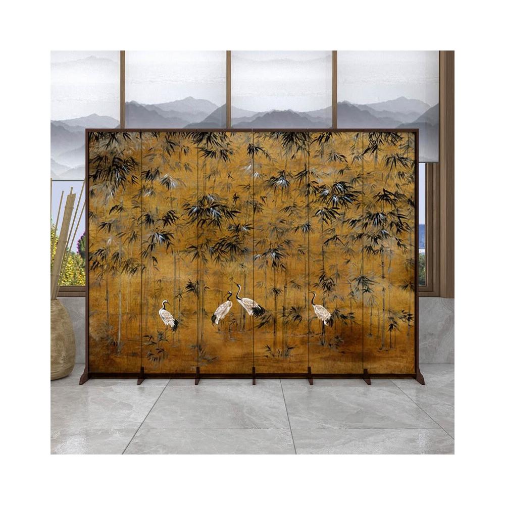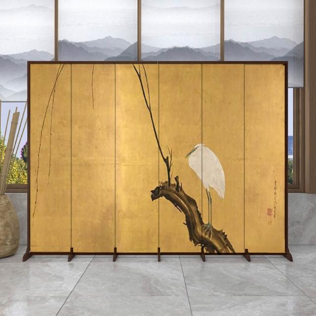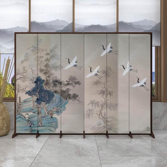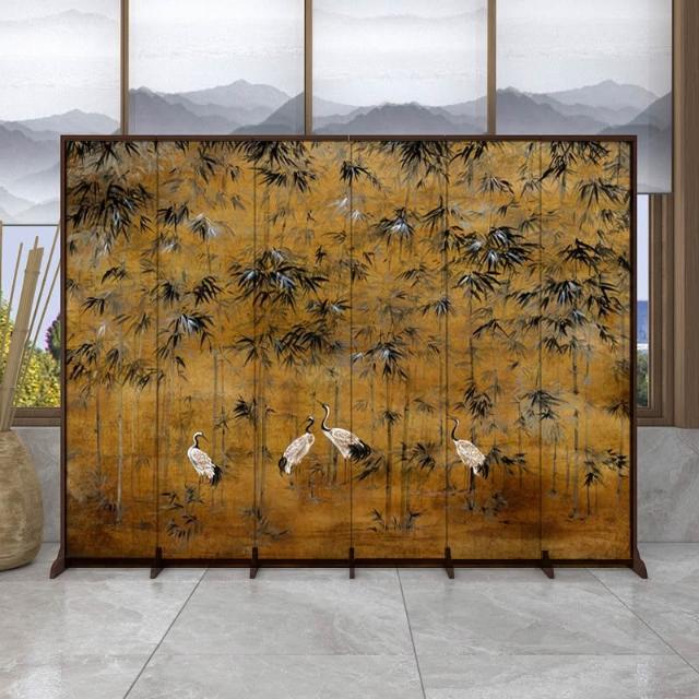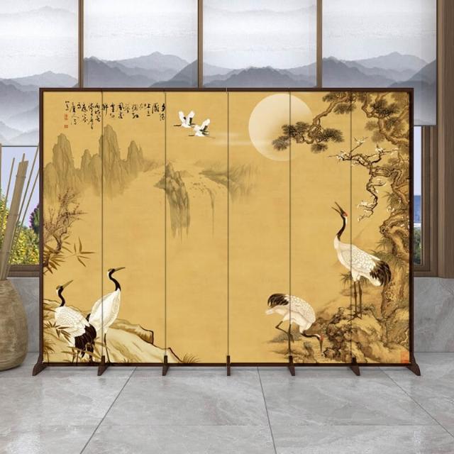 日式屏風屏風 隔斷日式美式新中式復古做舊仙鶴客廳臥室書房酒店可折疊移動