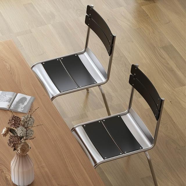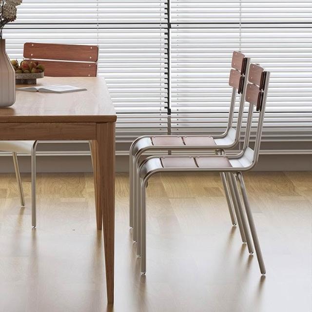 可開票 餐椅 餐桌椅 靠背椅 北歐餐椅 餐廳簡約日式復古家具不銹鋼色休閒椅 咖啡廳實木靠背椅 子