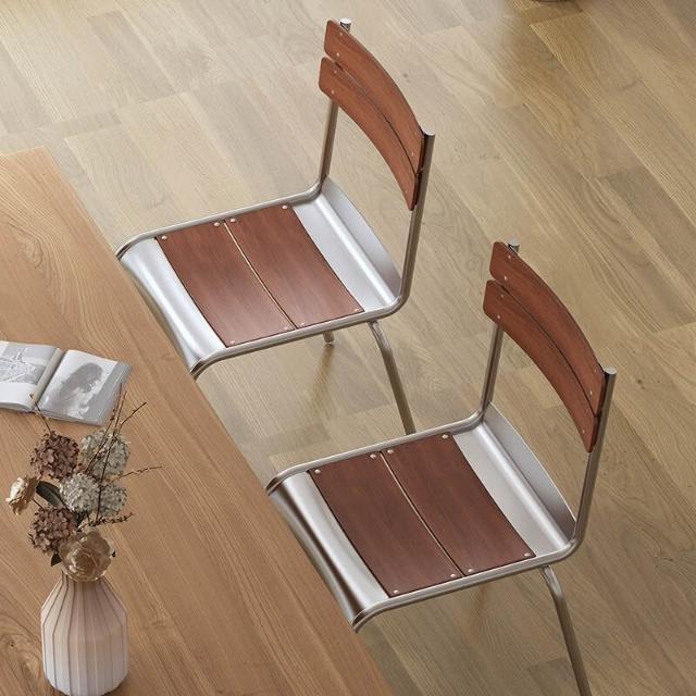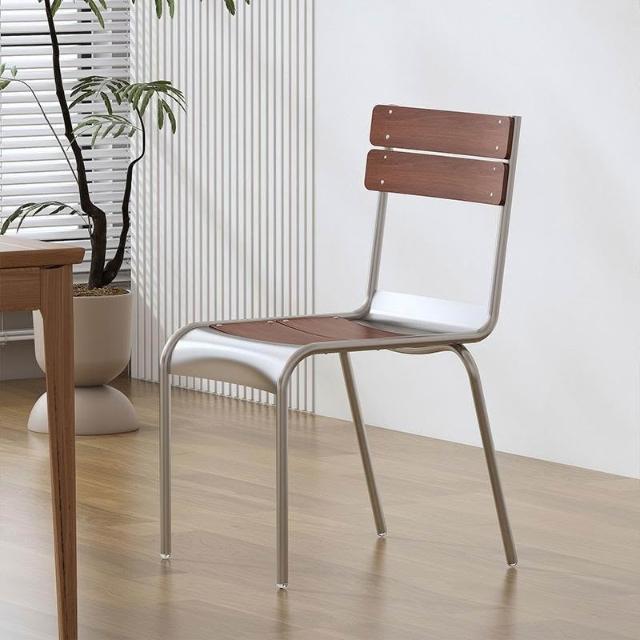 可開票 餐椅 餐桌椅 靠背椅 北歐餐椅 餐廳簡約日式復古家具不銹鋼色休閒椅 咖啡廳實木靠背椅 子