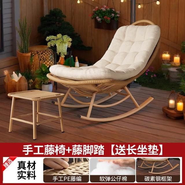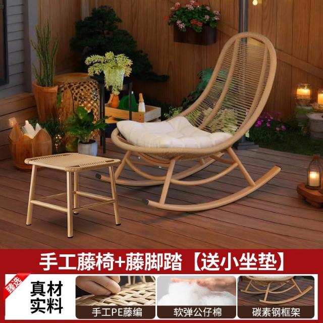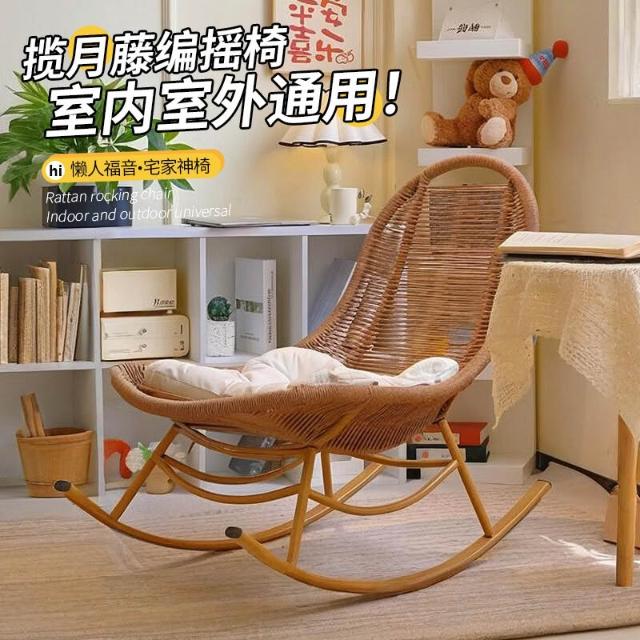 藤編椅 休閒椅 中古椅藤椅搖搖椅躺椅 成人可睡覺客廳單人懶人藤編搖椅 陽台家用休閒沙發