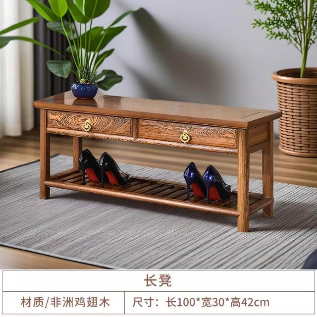 台灣熱銷 紅木長條凳 雞翅木可坐換鞋凳 新中式入戶玄關鞋架 家用長板實木凳子