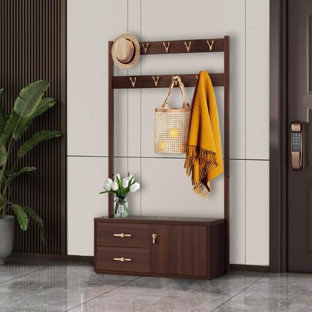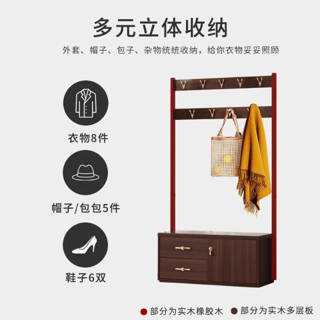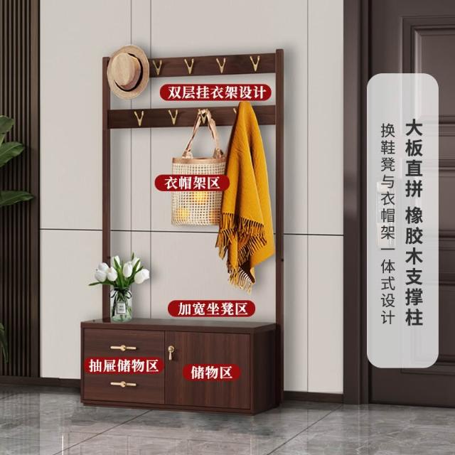 實木鞋櫃 換鞋凳 掛衣架 一體落地臥室進門衣帽架 家用室內鞋架不占地
