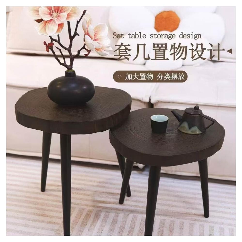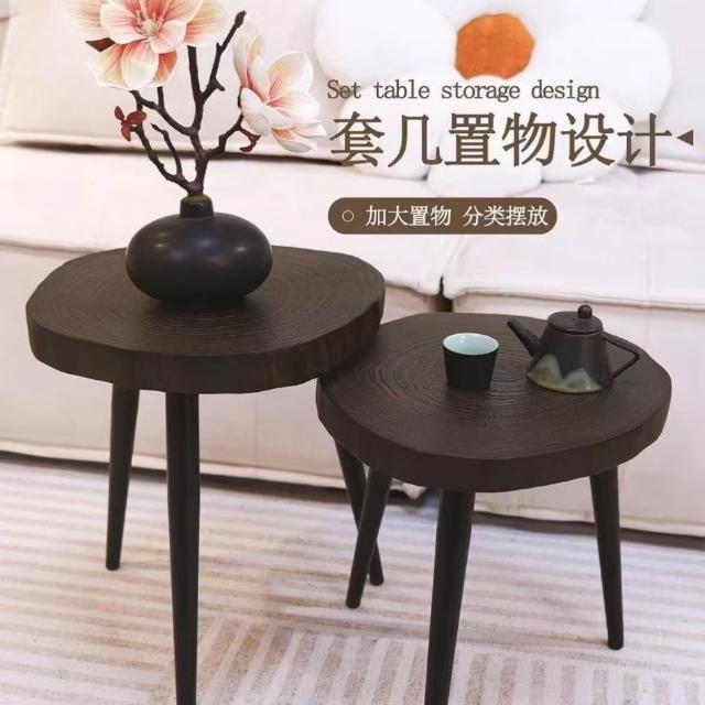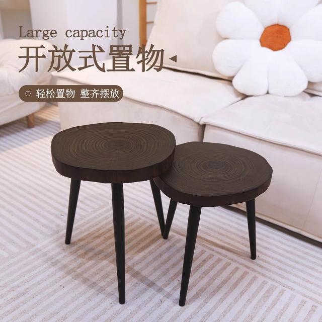 可開票 茶几 茶台 茶桌 碳化銀杏木茶几 鐵藝原切實木年輪邊角幾 客廳陽台沙發輕奢小桌子