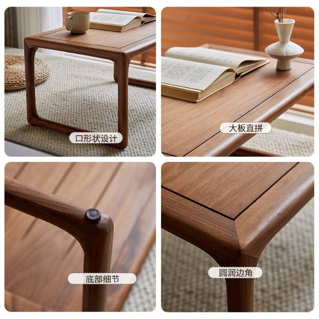 可開票 茶几 茶台 茶桌 北美黑胡桃木炕桌新中式榻榻米矮茶桌實木炕幾禪意飄窗桌子小茶幾