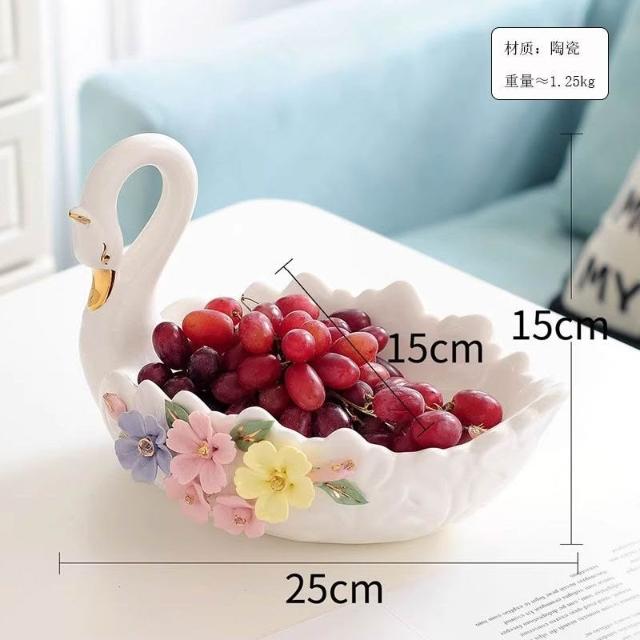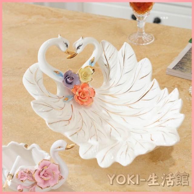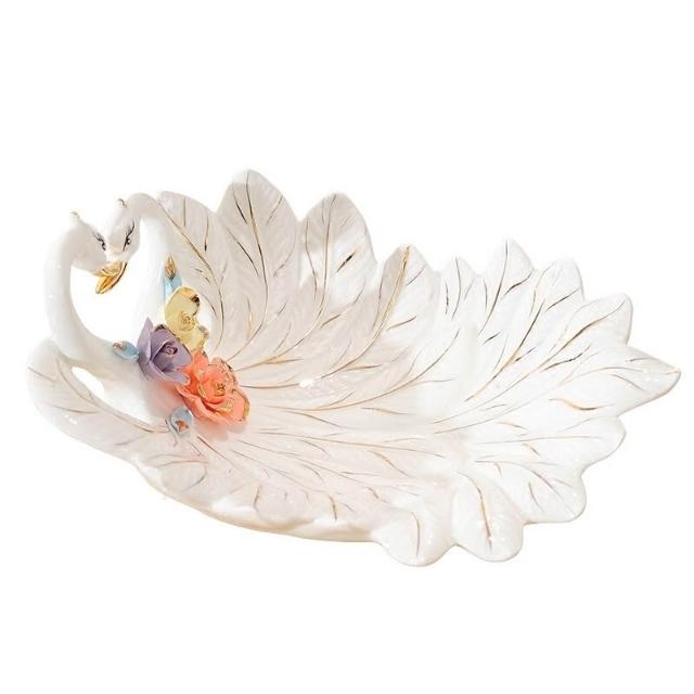 🔥熱銷新款 水果盤 幹果盤 糖果盤 零食盤 點心盤 多功能 天鵝水果盤創意現代客廳簡約陶瓷茶幾擺件糖果盤結婚歐式家用陶