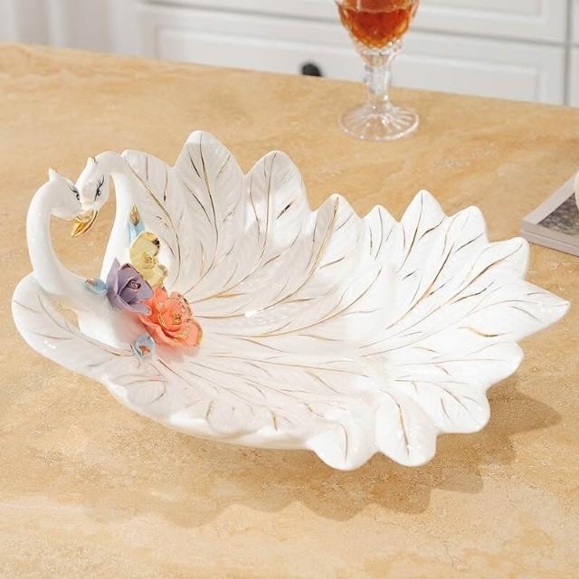 🔥熱銷新款 水果盤 幹果盤 糖果盤 零食盤 點心盤 多功能 天鵝水果盤創意現代客廳簡約陶瓷茶幾擺件糖果盤結婚歐式家用陶