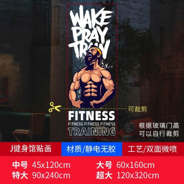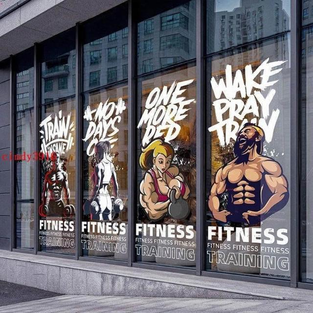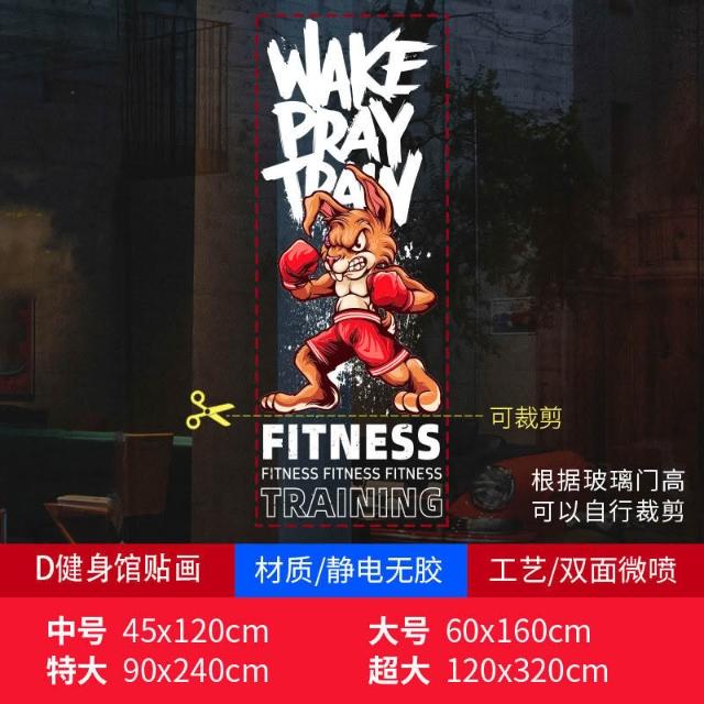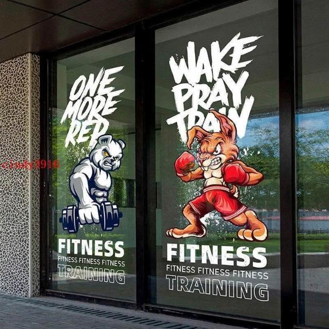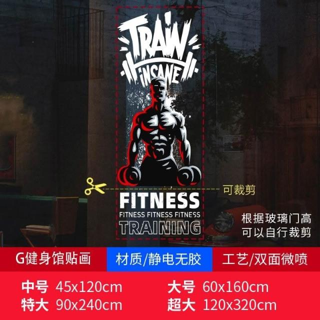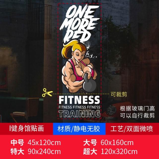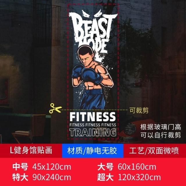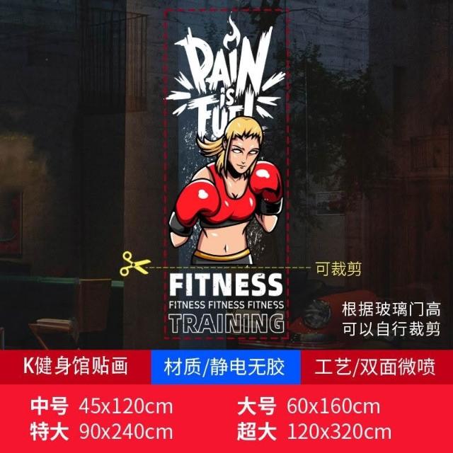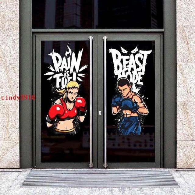 推荐 搏擊健身FITNESS創意海報玻璃貼畫靜電無膠肌肉猛男美女擼鐵插畫1.6
