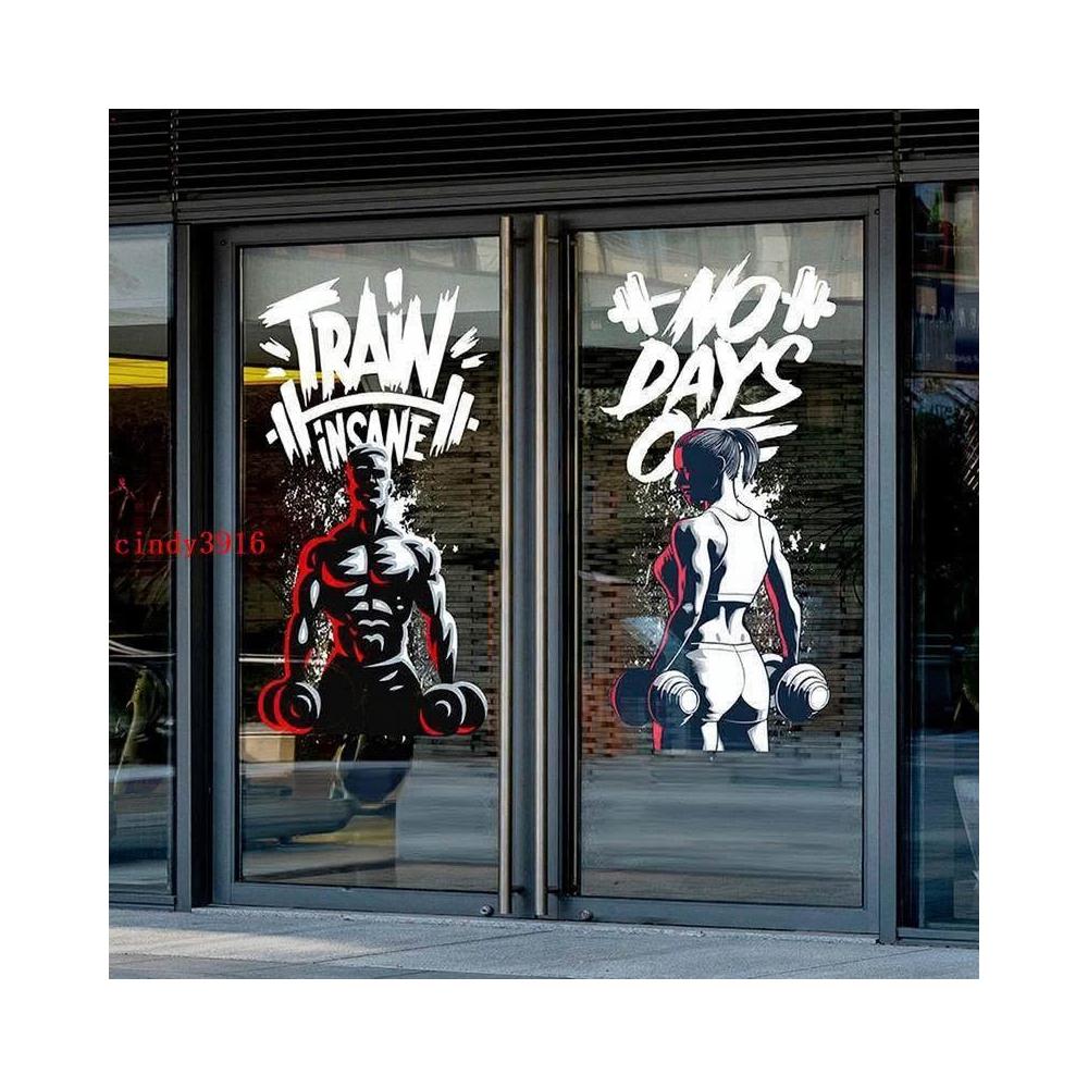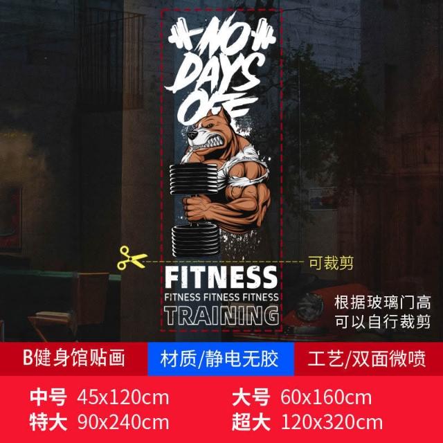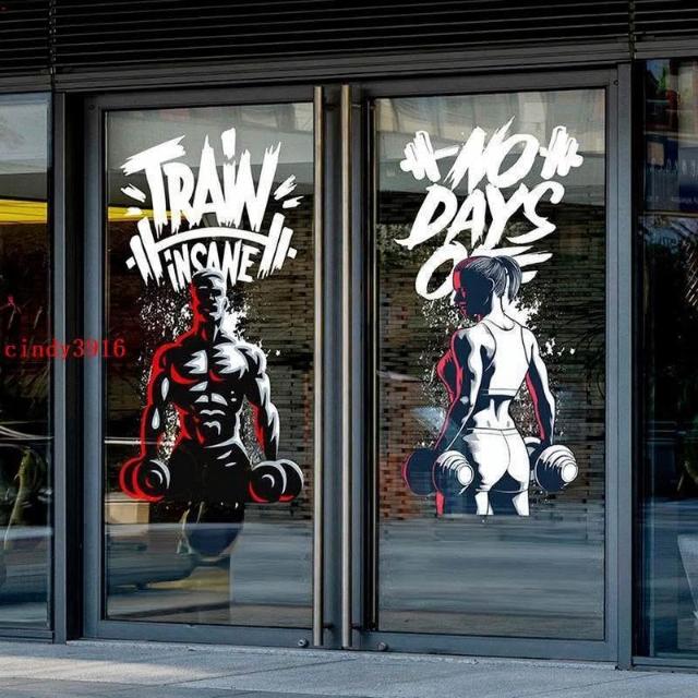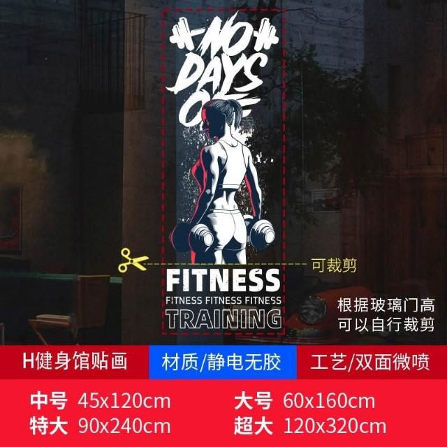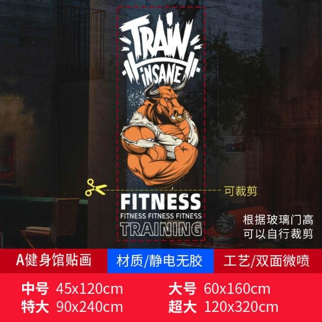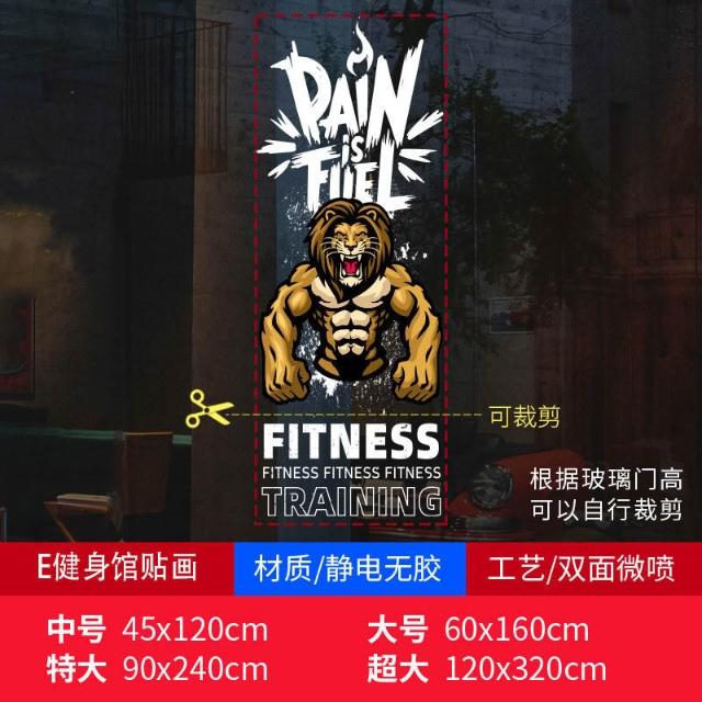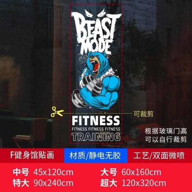 推荐 搏擊健身FITNESS創意海報玻璃貼畫靜電無膠肌肉猛男美女擼鐵插畫1.6