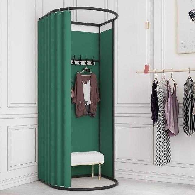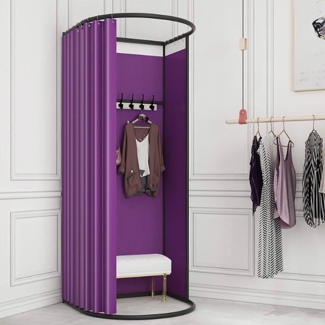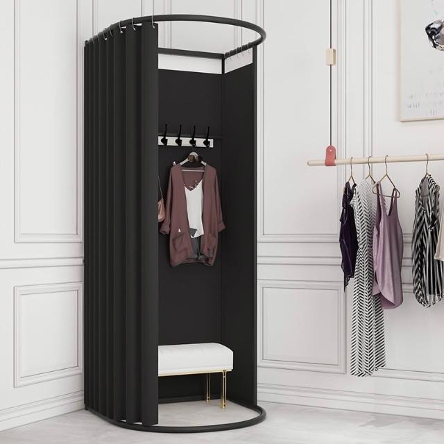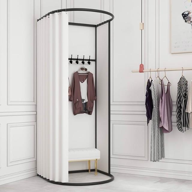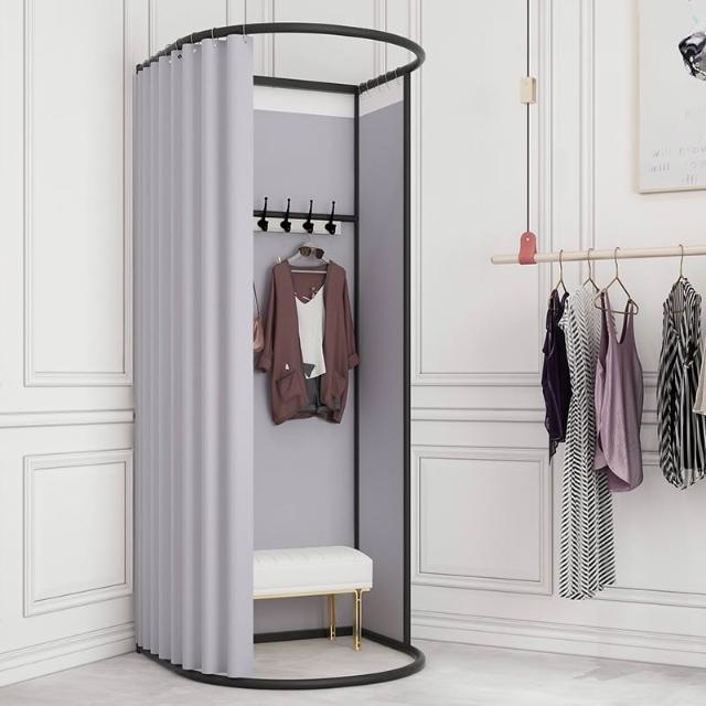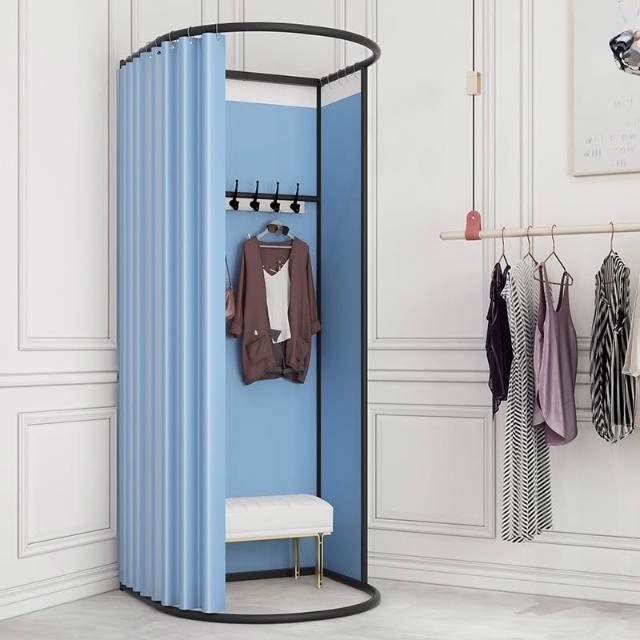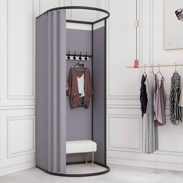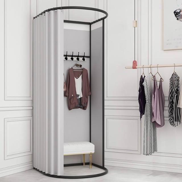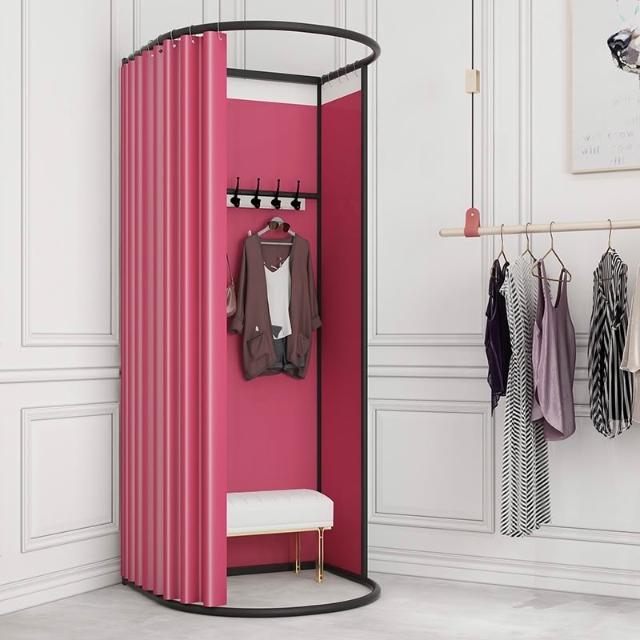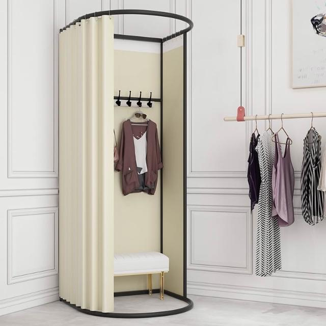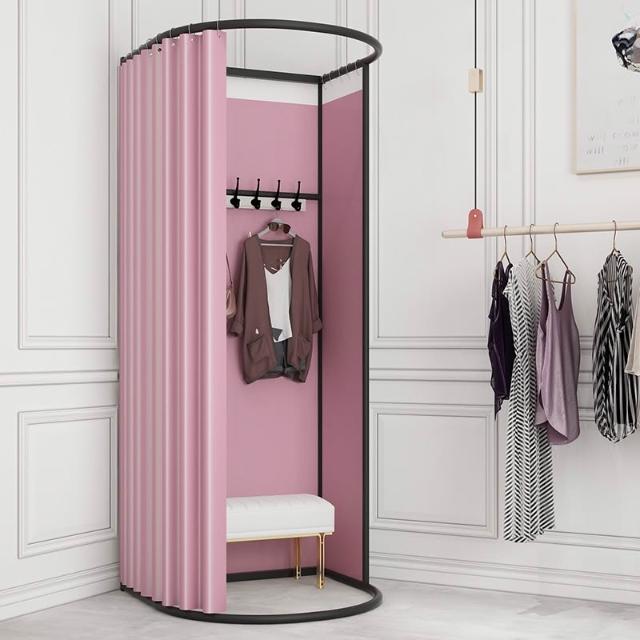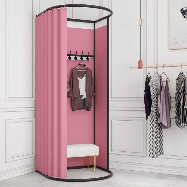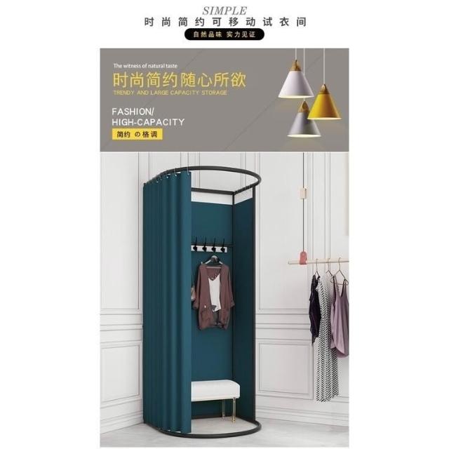 推薦 開發票~服裝店試衣間 換衣落地展示架 服裝店移動便攜更衣室軌道臨時活動簡易試衣間 門簾換衣間展示架子 1223