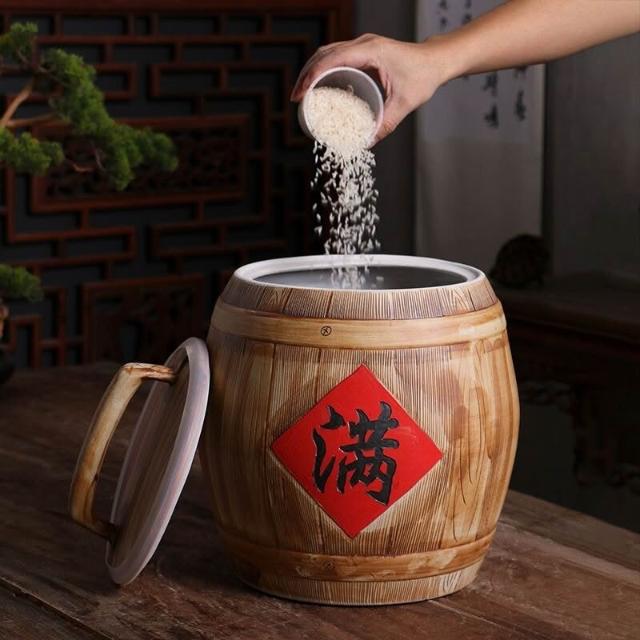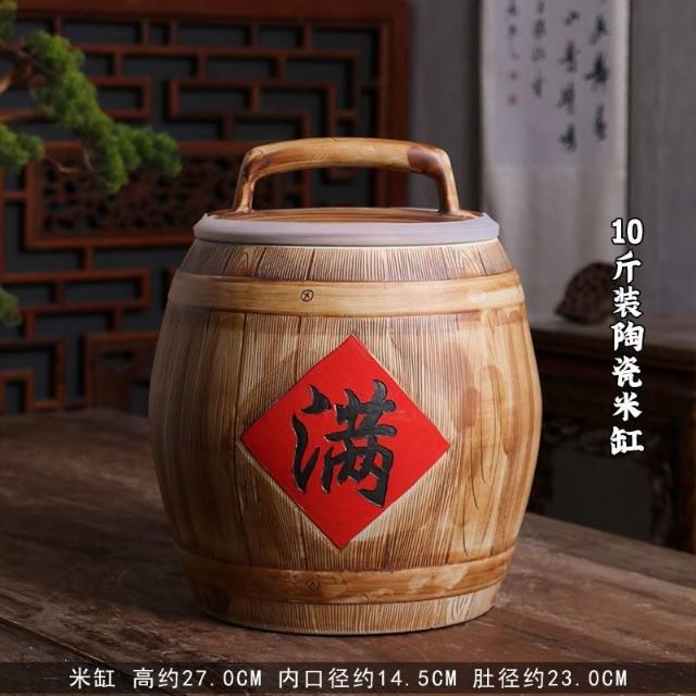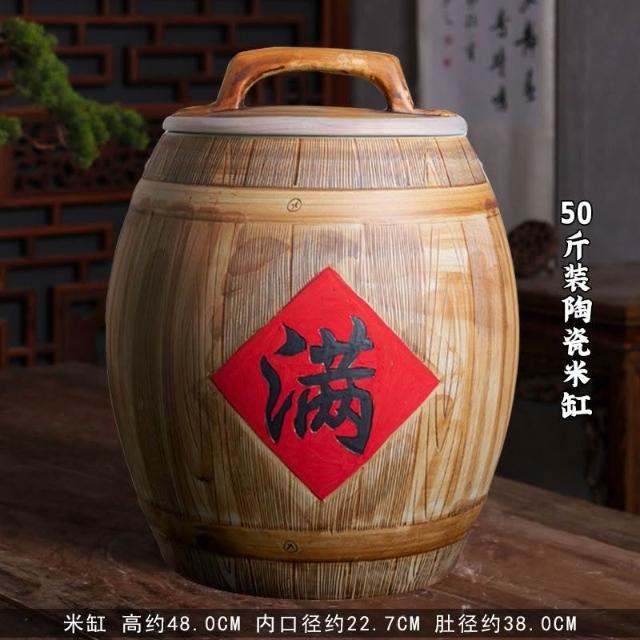 🔥熱銷新款米缸 陶瓷米缸 米桶 儲米桶 五穀收納桶 麵粉缸 景德鎮陶瓷米缸帶蓋家用10斤20斤30斤50裝老式密封儲米