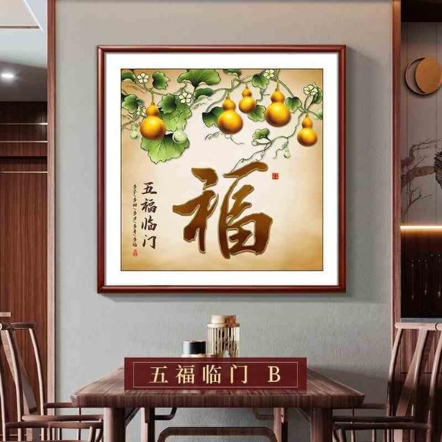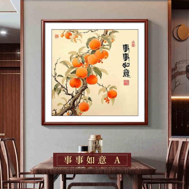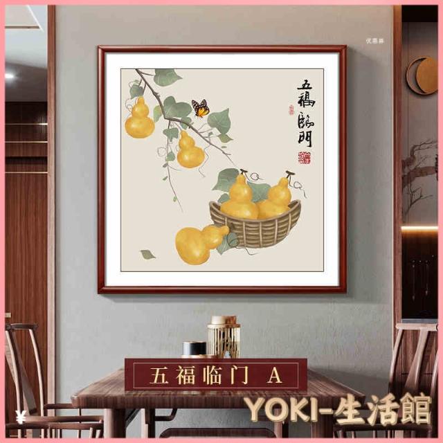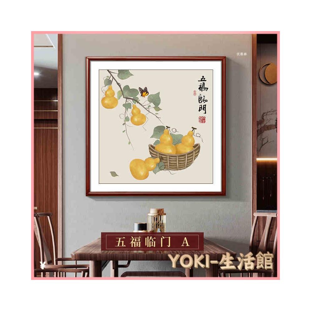 🔥熱銷新款 裝飾畫 墻壁裝飾 居家裝飾 客廳臥室背景畫 事事如意餐廳實木正方形掛畵新中式百財福祿畵飯廳包廂大豐收壁畵