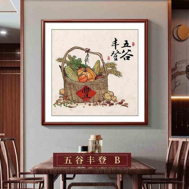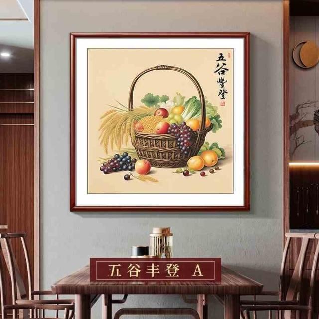 🔥熱銷新款 裝飾畫 墻壁裝飾 居家裝飾 客廳臥室背景畫 事事如意餐廳實木正方形掛畵新中式百財福祿畵飯廳包廂大豐收壁畵
