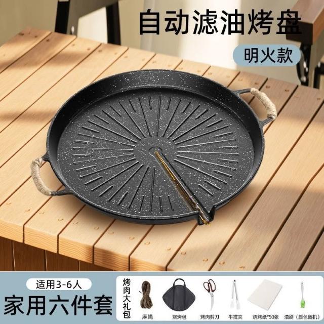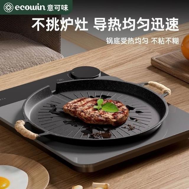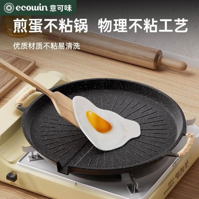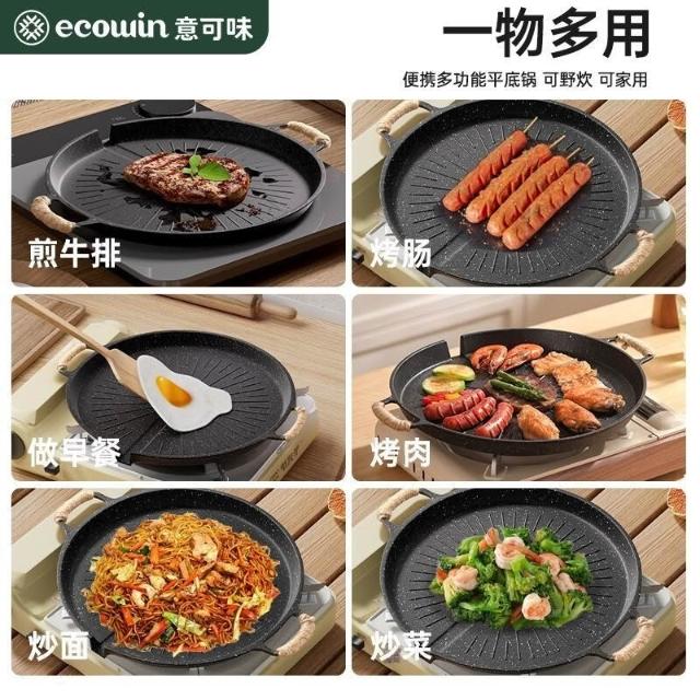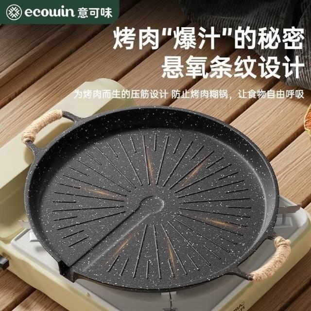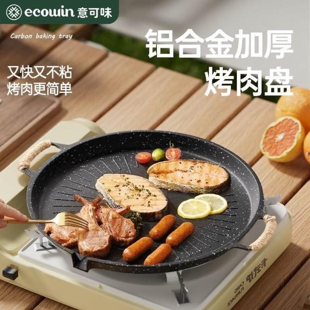 🔥熱銷新款 烤盤 多功能燒烤盤 煎盤 煎烤盤 燒烤盤 意可味戶外麥飯石烤盤燒烤盤韓式烤肉盤露營家用烤肉鍋煎電磁爐雙