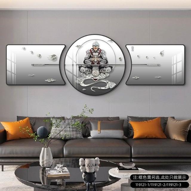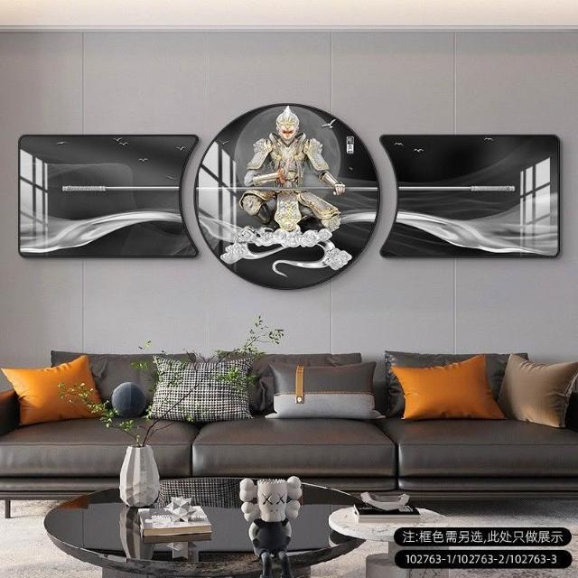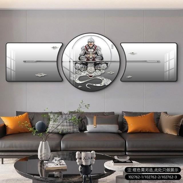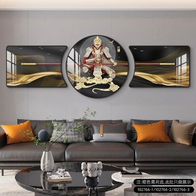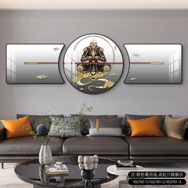 🔥熱銷新款 裝飾畫 墻壁裝飾 居家裝飾 客廳臥室背景畫 鬥戰勝佛裝飾畵齊天大聖客廳沙髮背景墻掛畵孫悟空輕奢大氣三聯畵