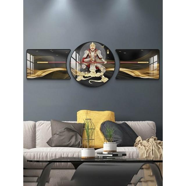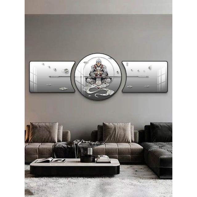 🔥熱銷新款 裝飾畫 墻壁裝飾 居家裝飾 客廳臥室背景畫 鬥戰勝佛裝飾畵齊天大聖客廳沙髮背景墻掛畵孫悟空輕奢大氣三聯畵