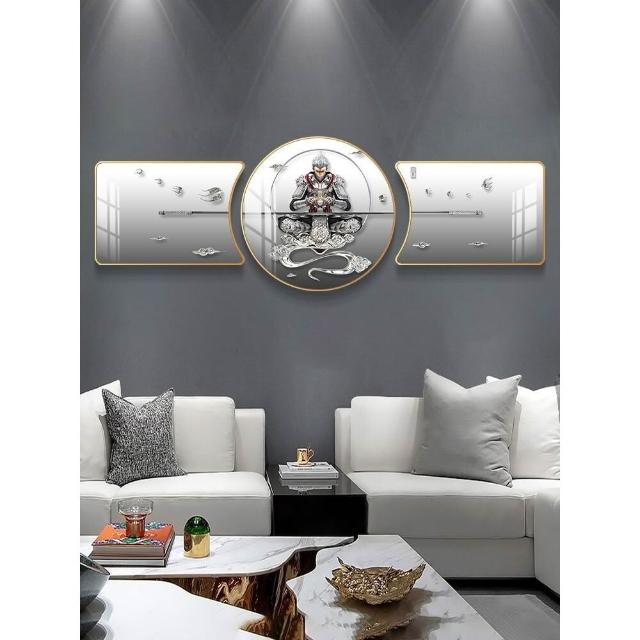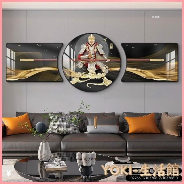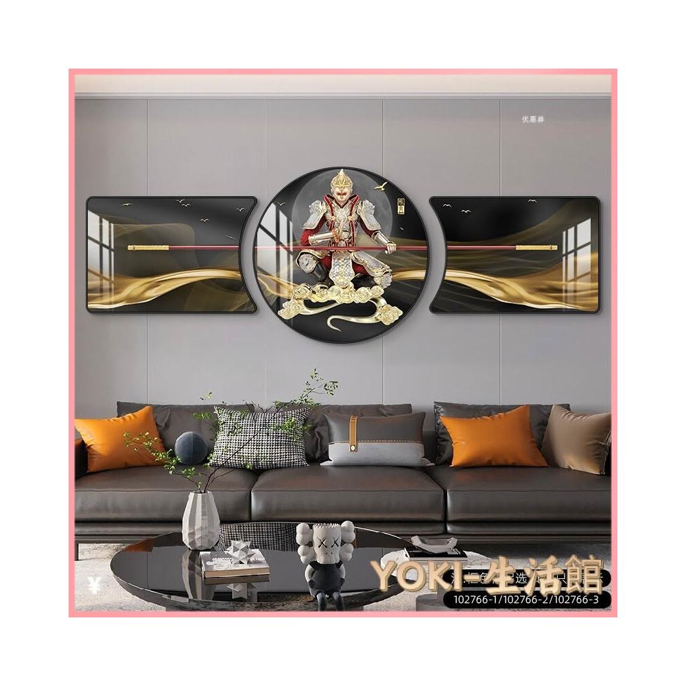 🔥熱銷新款 裝飾畫 墻壁裝飾 居家裝飾 客廳臥室背景畫 鬥戰勝佛裝飾畵齊天大聖客廳沙髮背景墻掛畵孫悟空輕奢大氣三聯畵
