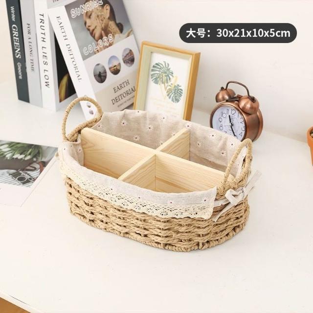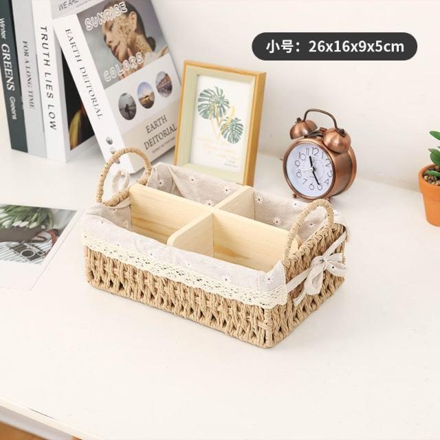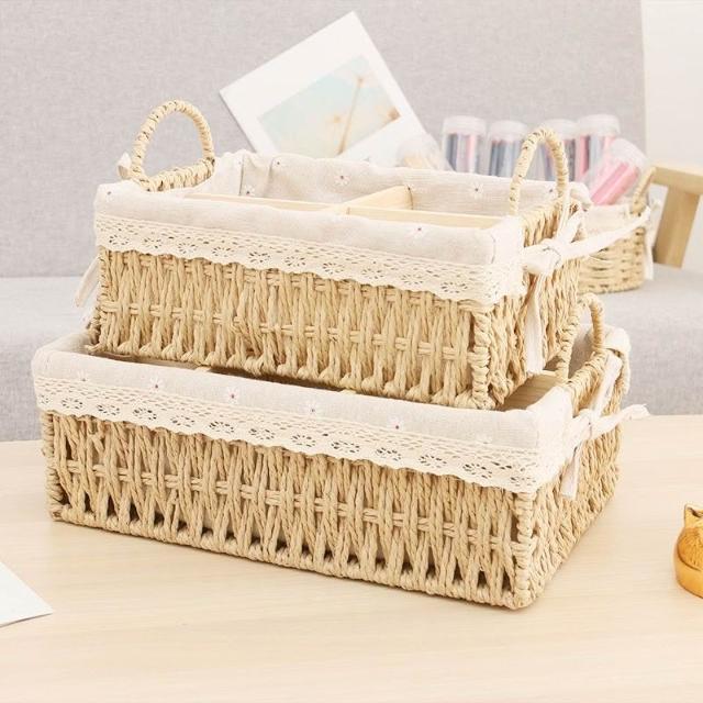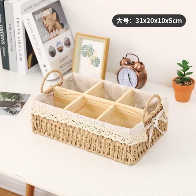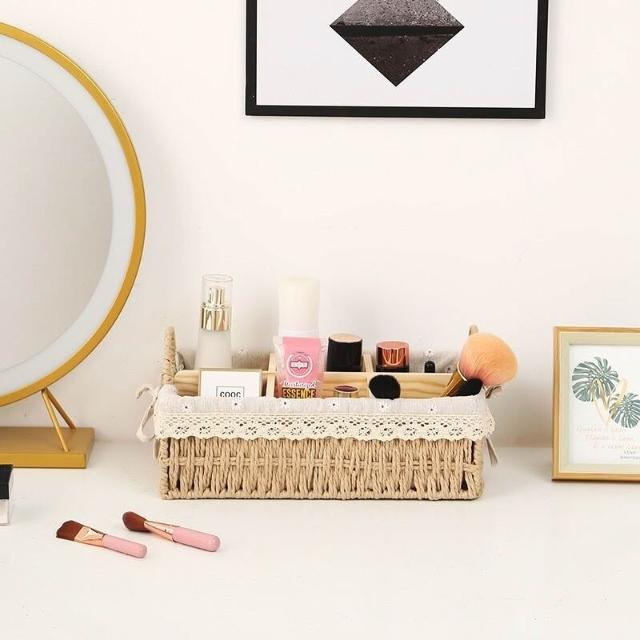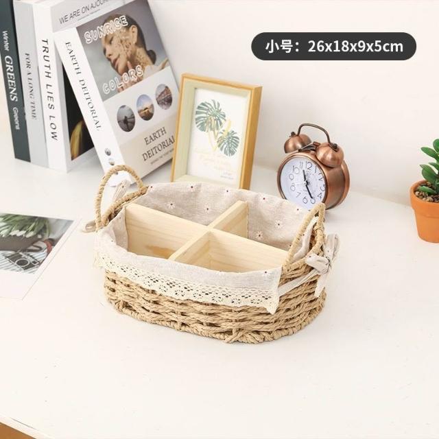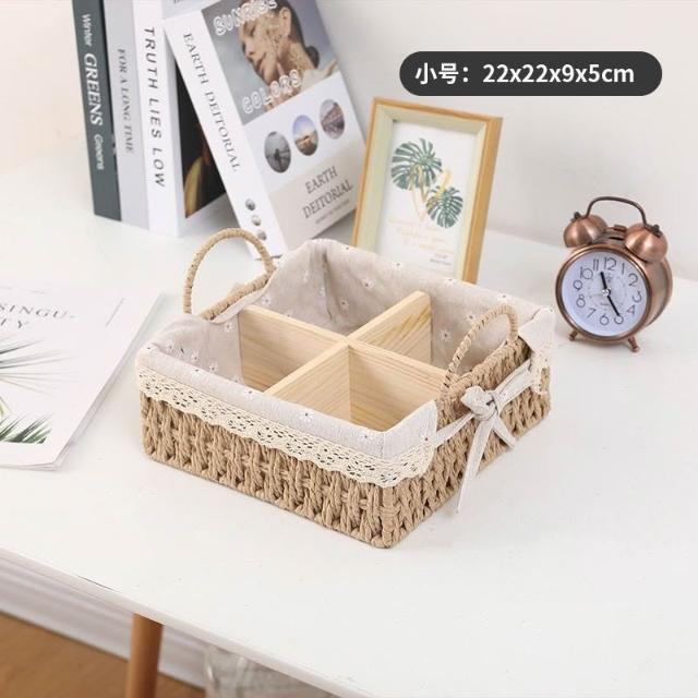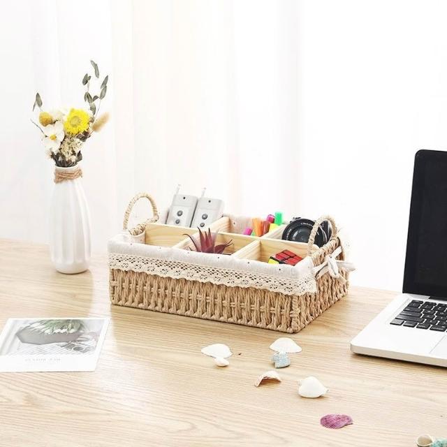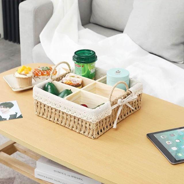 收納籃 日式收納盒 收納框 日式儲物盒 桌上收納框 桌麵化妝品收納盒草編分格零食收納筐鑰匙遙控器雜物收納盒野餐籃