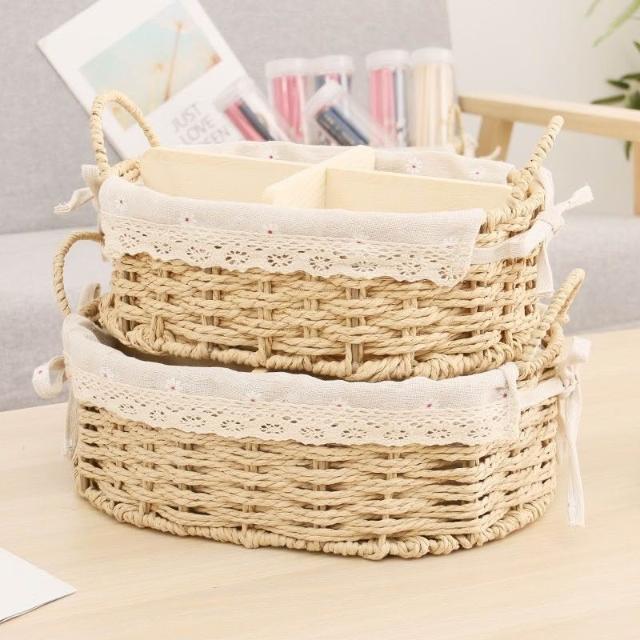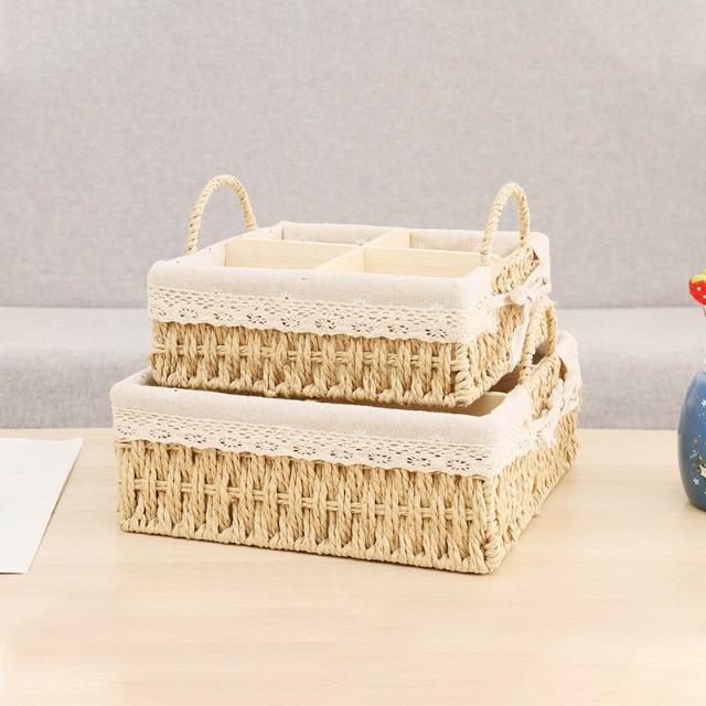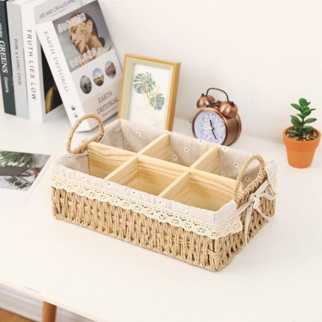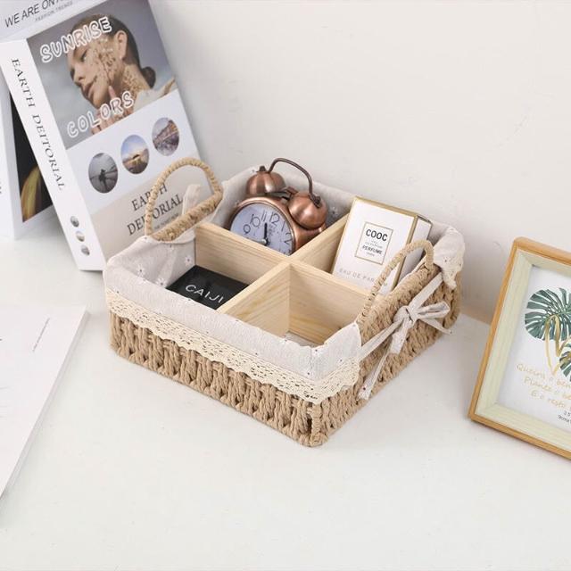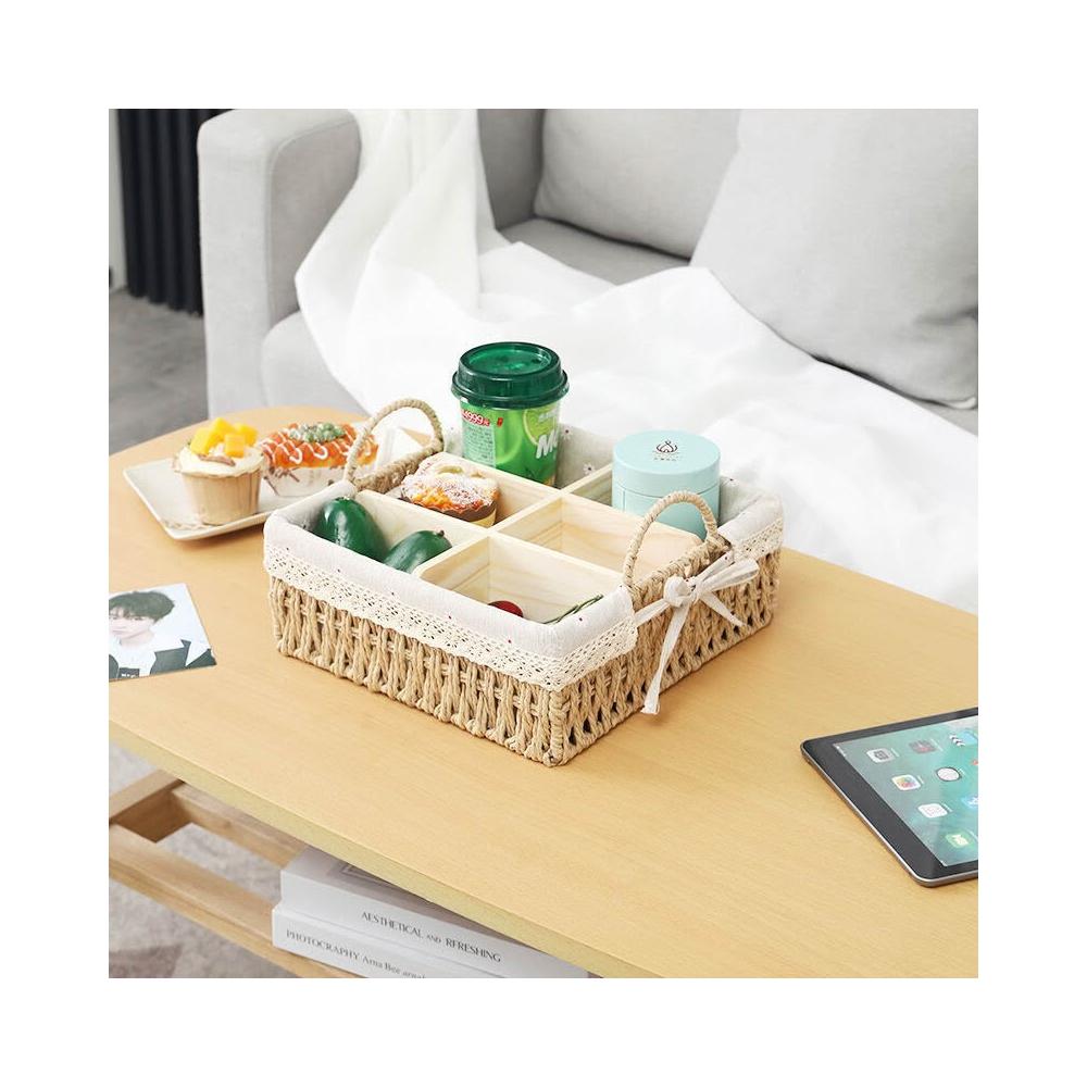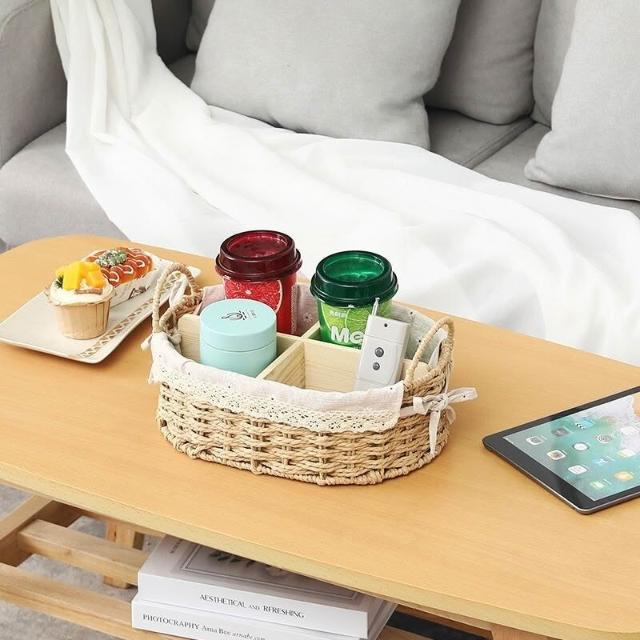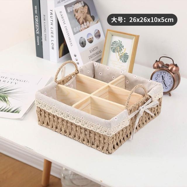 收納籃 日式收納盒 收納框 日式儲物盒 桌上收納框 桌麵化妝品收納盒草編分格零食收納筐鑰匙遙控器雜物收納盒野餐籃
