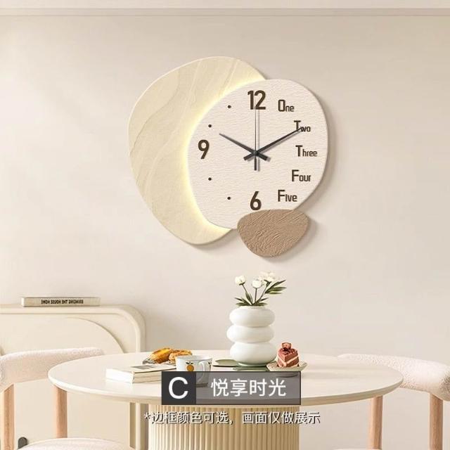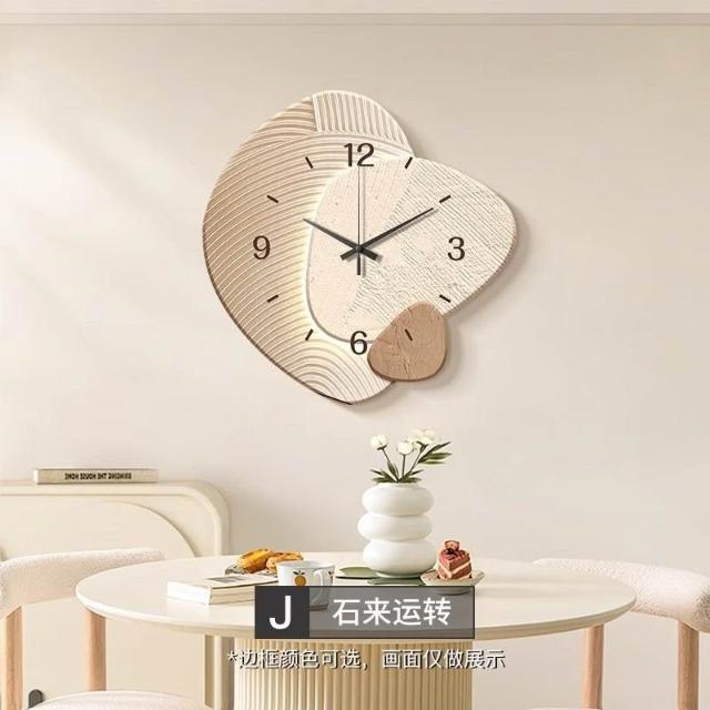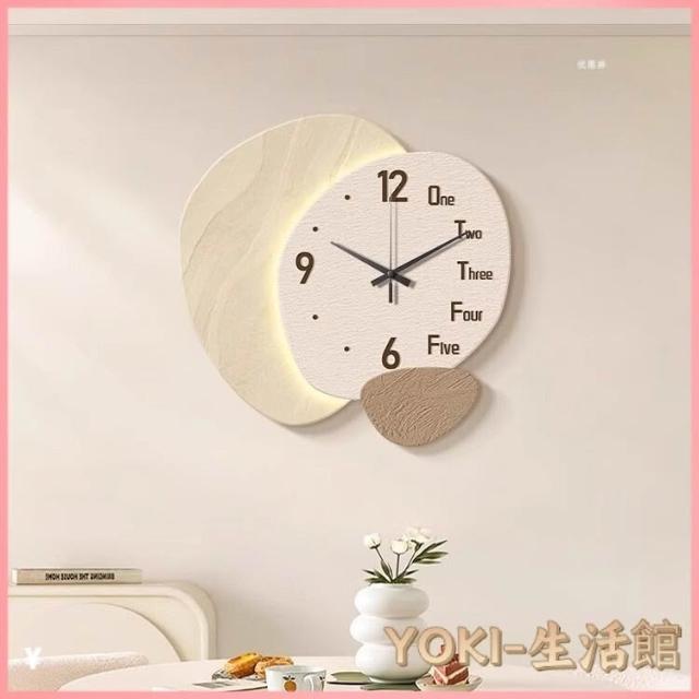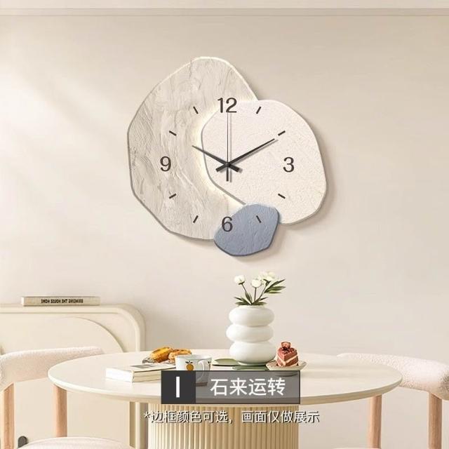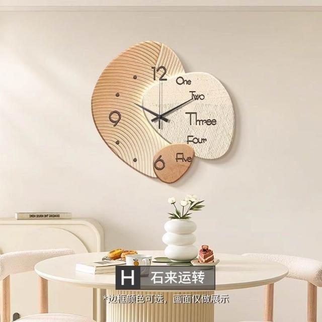 掛鐘 靜音時鐘 創意時鐘 時鐘 北歐風時鐘 掛壁時鐘 奶油風鍾錶掛墻客廳裝飾畵石來運轉餐廳高級感掛鍾創意時鍾墻壁畵