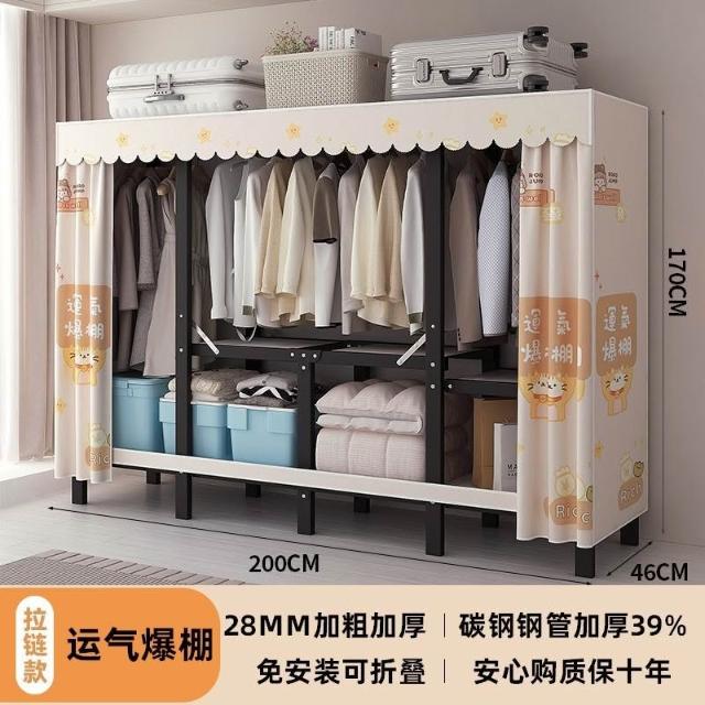 YOKI-折疊衣櫃 折疊收納箱 收納架 衣物收納 衣櫃免安裝折疊式簡易衣櫃家用臥室出租房加固鋼架結構收納掛衣櫥