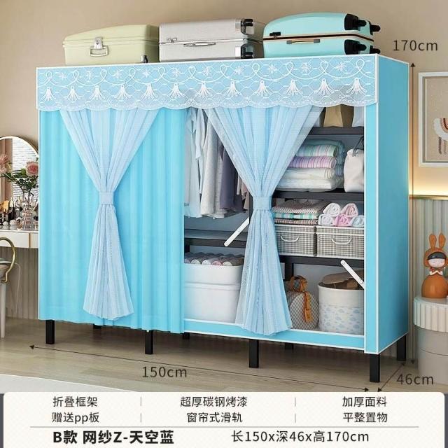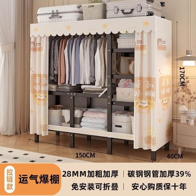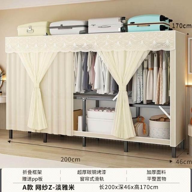 YOKI-折疊衣櫃 折疊收納箱 收納架 衣物收納 衣櫃免安裝折疊式簡易衣櫃家用臥室出租房加固鋼架結構收納掛衣櫥
