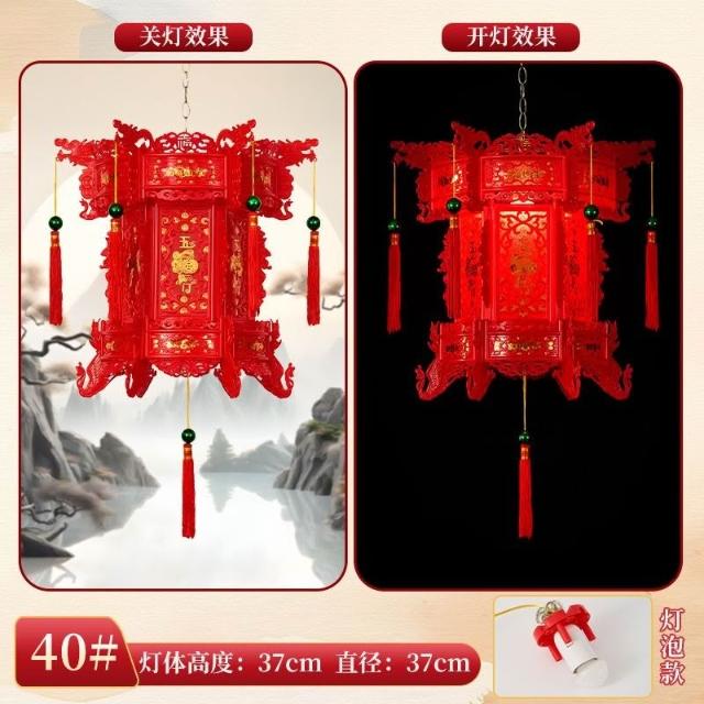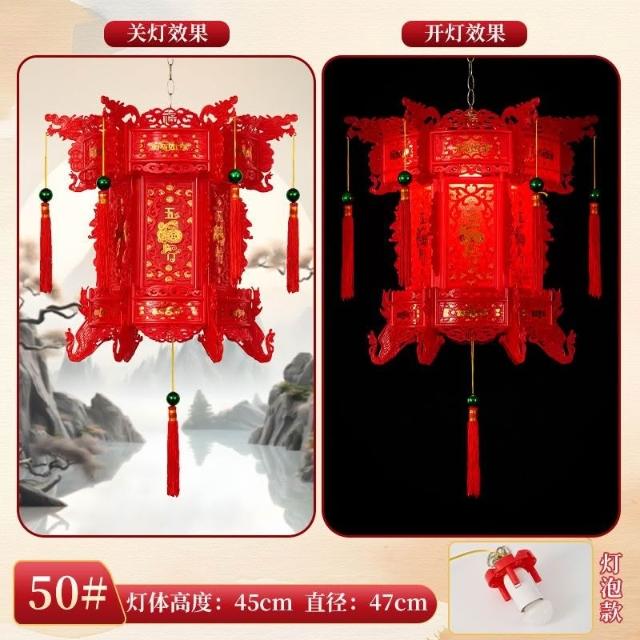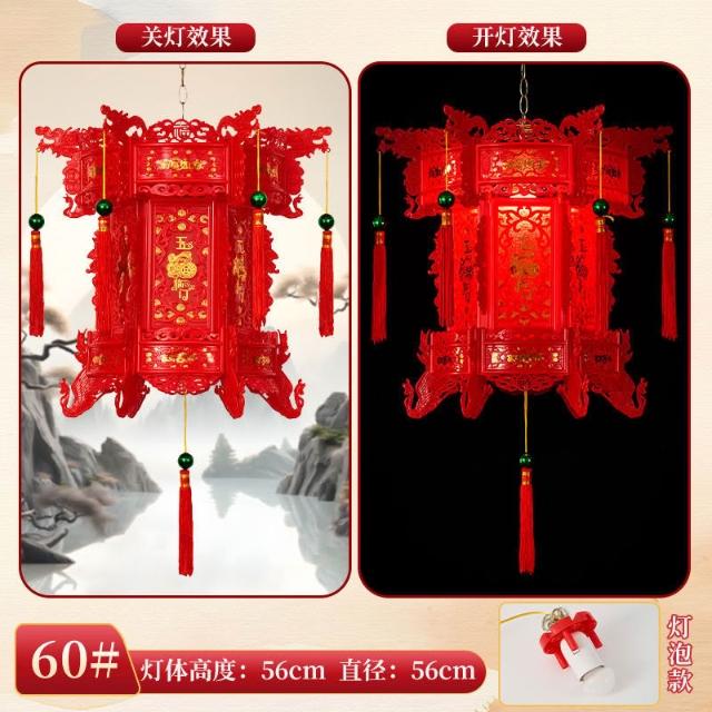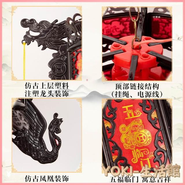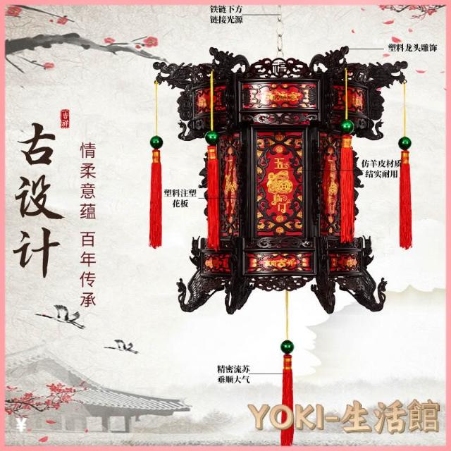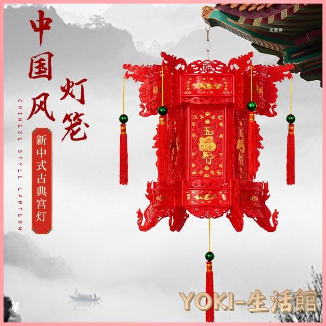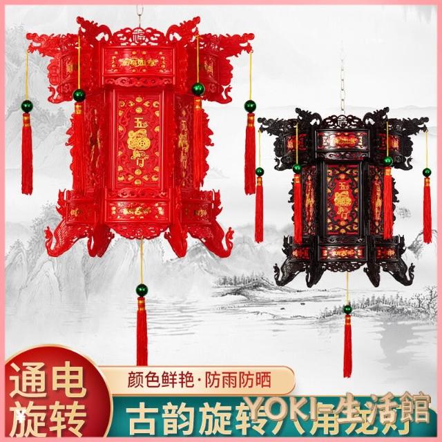 新年燈籠 燈籠 吊燈籠 紅燈籠 大門燈籠 新年裝飾 中式宮燈仿古燈籠七彩六角龍燈新年旋轉結婚LED走馬燈陽臺吊燈