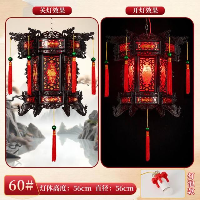 新年燈籠 燈籠 吊燈籠 紅燈籠 大門燈籠 新年裝飾 中式宮燈仿古燈籠七彩六角龍燈新年旋轉結婚LED走馬燈陽臺吊燈