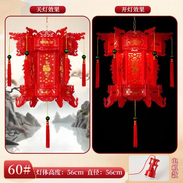 新年燈籠 燈籠 吊燈籠 紅燈籠 大門燈籠 新年裝飾 中式宮燈仿古燈籠七彩六角龍燈新年旋轉結婚LED走馬燈陽臺吊燈