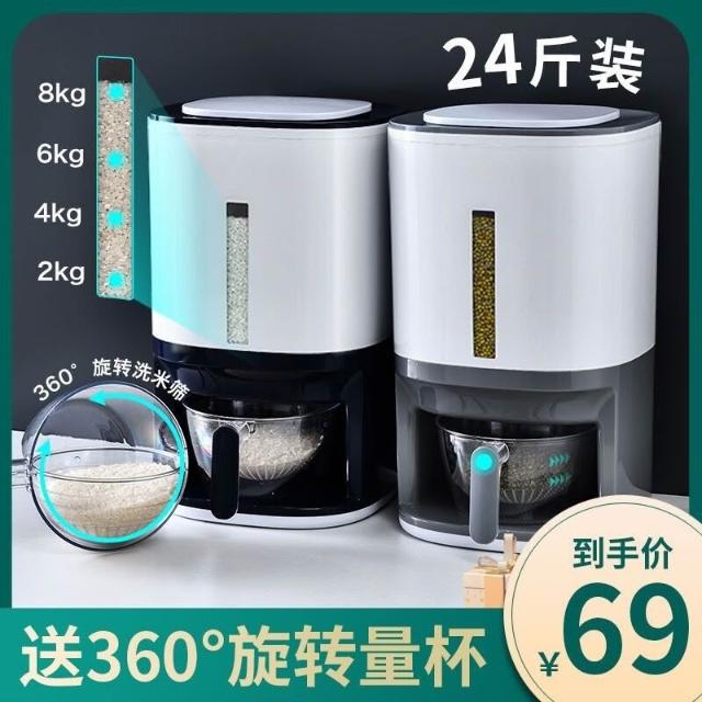 JY-儲米桶 密封桶 米桶 家用儲米箱 米缸 雜糧桶 密封計量米桶儲米箱子防蟲防潮20斤家用裝米麵收納盒大米缸儲存器