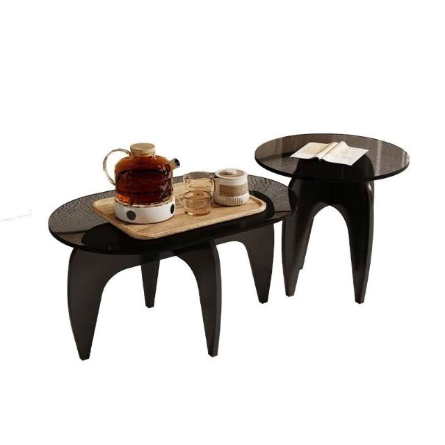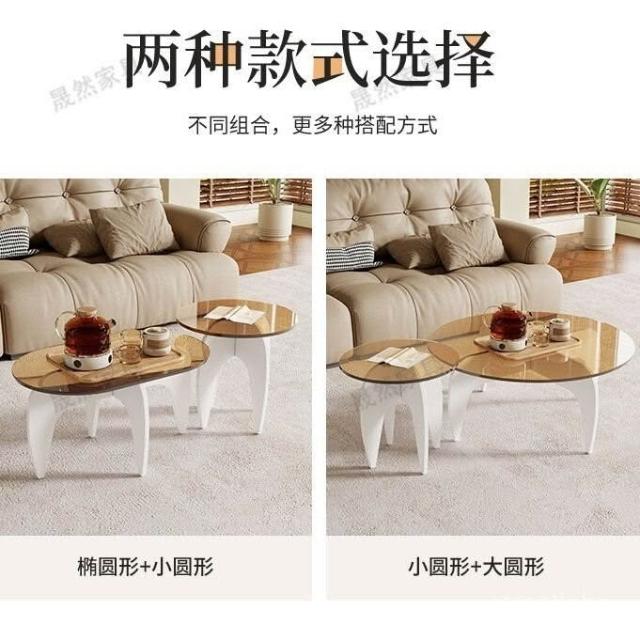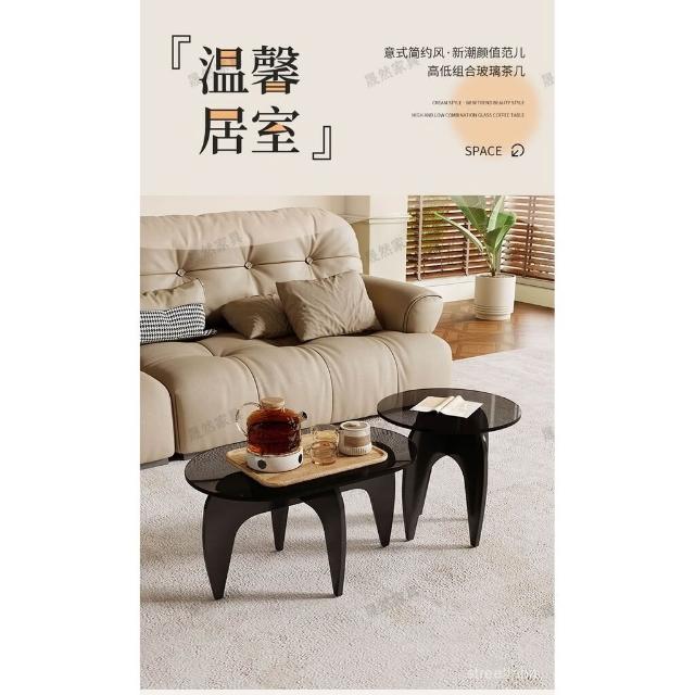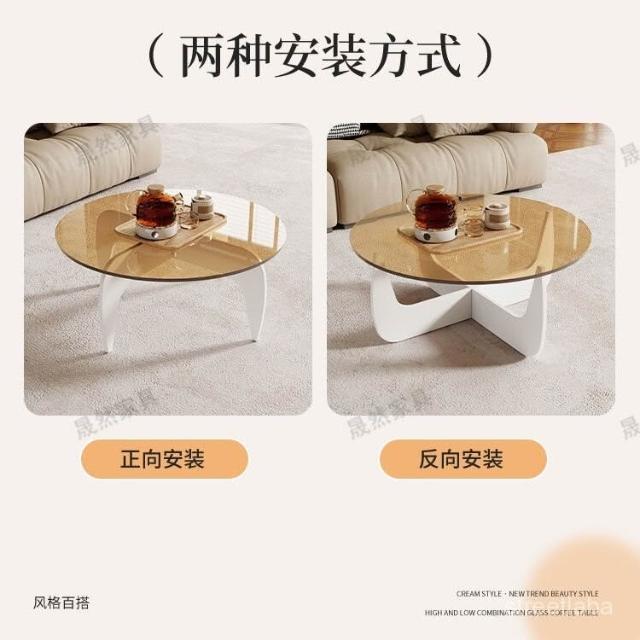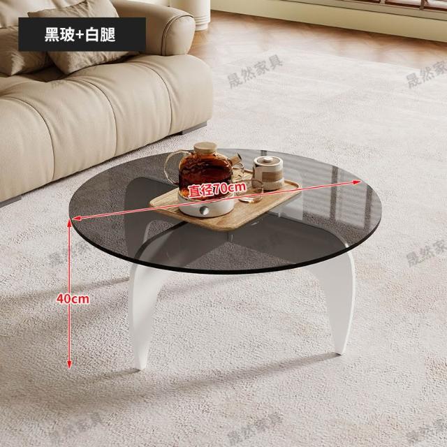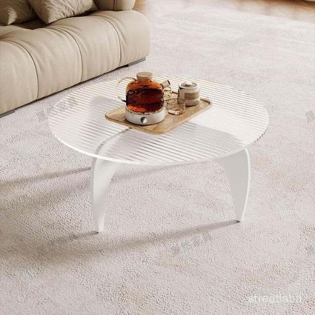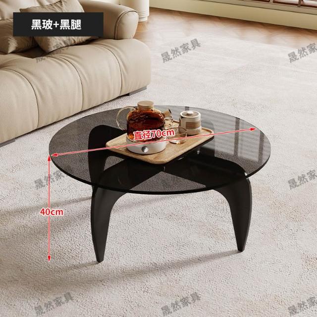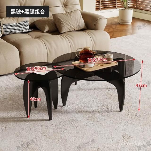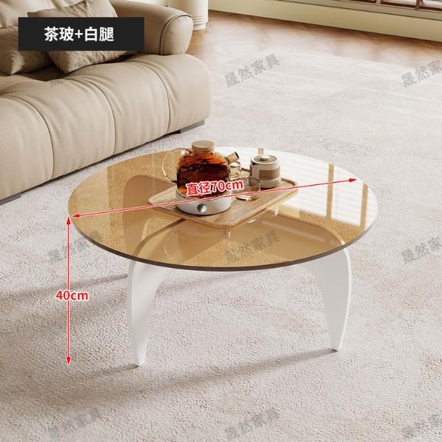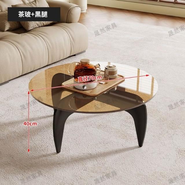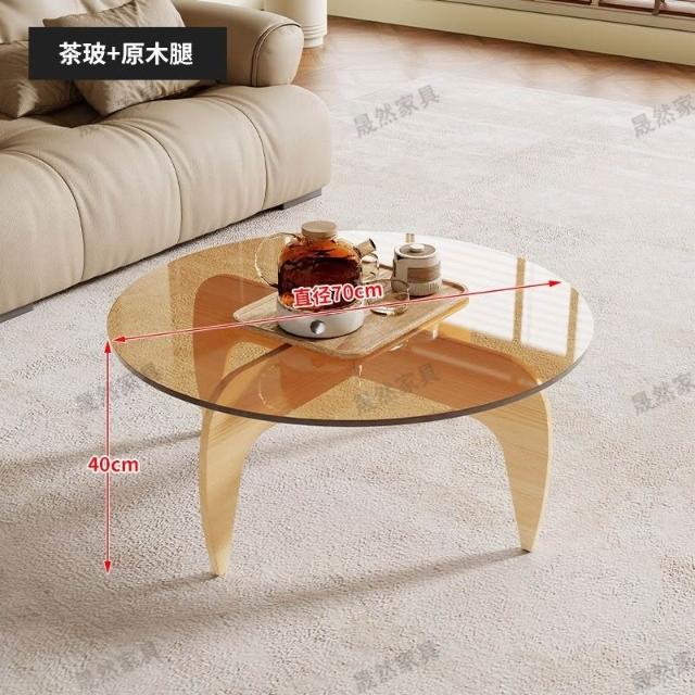 ⭐低價+免運⭐圓形玻璃茶幾小戶型客廳家用簡約透明極簡輕奢創意實木玻璃矮茶