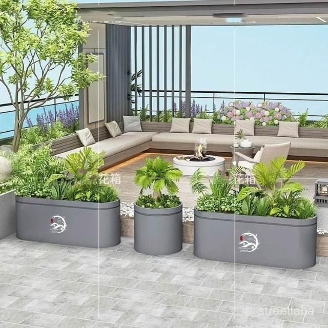 💚免運 可定製💚戶外鐵藝花箱組閤長方形花池廣場售樓部種植箱花墰圍欄定製