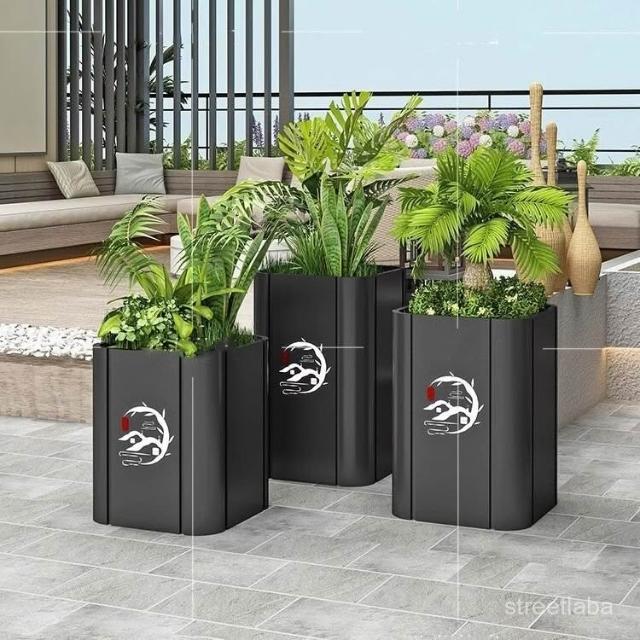 💚免運 可定製💚戶外鐵藝花箱組閤長方形花池廣場售樓部種植箱花墰圍欄定製