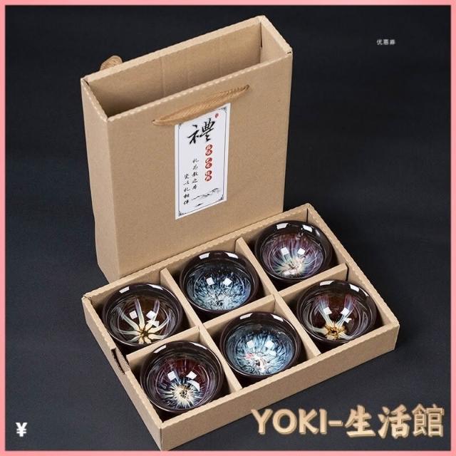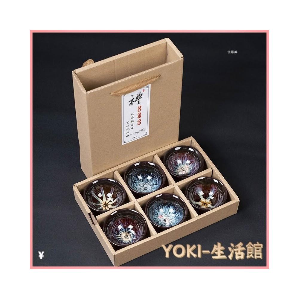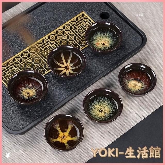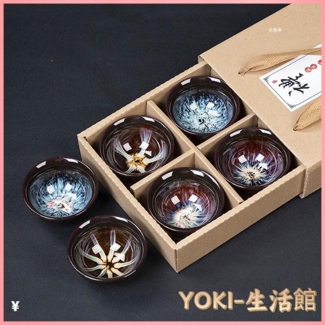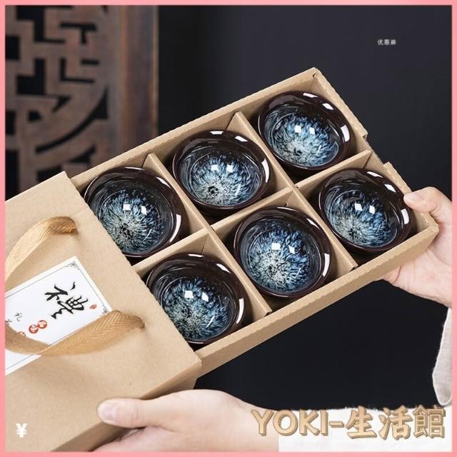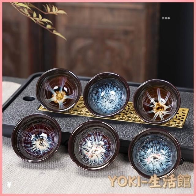 瓷杯 陶瓷杯 茶道用具 泡茶茶杯 茶杯 茶具 茶具組 功夫茶小茶杯6衹裝陶瓷茶盞茶碗套裝家用茶具杯子窯變主人杯建盞