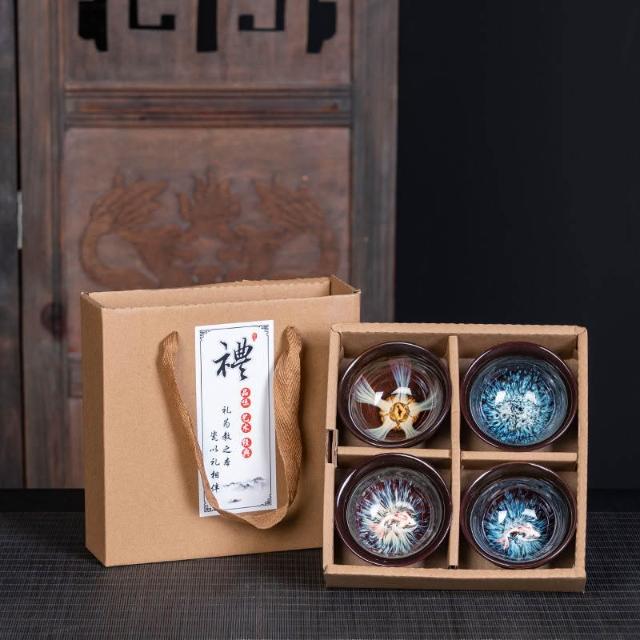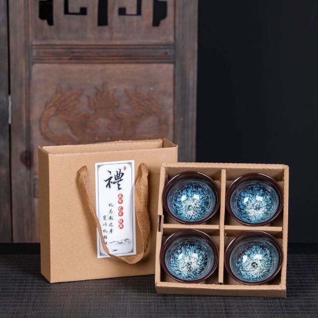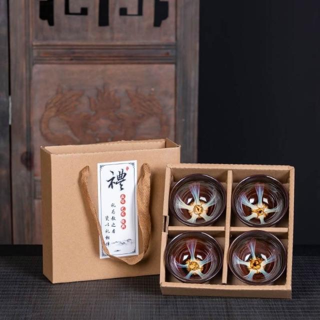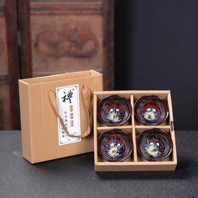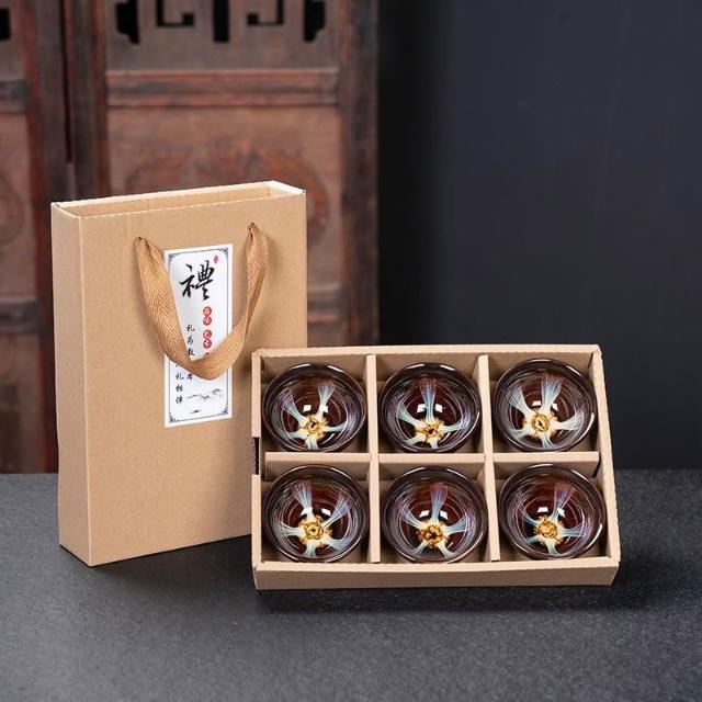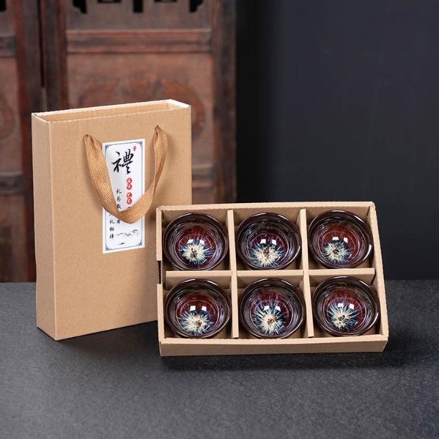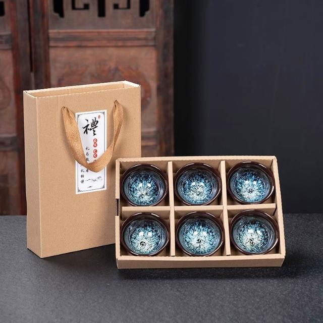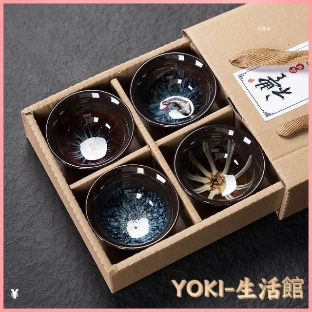 瓷杯 陶瓷杯 茶道用具 泡茶茶杯 茶杯 茶具 茶具組 功夫茶小茶杯6衹裝陶瓷茶盞茶碗套裝家用茶具杯子窯變主人杯建盞